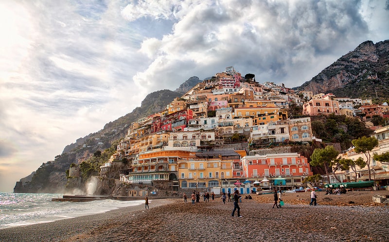 Positano, c’est le coup de cœur assuré ! Ce village emblématique de la côte Amalfitaine séduit instantanément avec ses maisons aux teintes pastel accrochées à flanc de falaise, ses ruelles étroites où les habitants se parlent de fenêtre à fenêtre ainsi que pour son atmosphère à la fois chic et authentique. Véritable labyrinthe coloré, Positano attire une clientèle haut de gamme en quête d’une Italie élégante, tout en conservant son âme de village pittoresque. À seulement 18 km de Sorrente et 15 km d’Amalfi, il mêle les influences de Capri et de Saint-Tropez, ce qui lui vaut une renommée internationale. On l’adore pour ses maisons dévalant les pentes jusqu’à la mer, ses points de vue enchanteresses et ses fabuleuses glaces artisanales mais on l’aime un peu moins pour sa foule et ses boutiques parfois trop tape-à-l’œil pour un village qui ne fut autrefois qu’un simple village de pêcheurs !