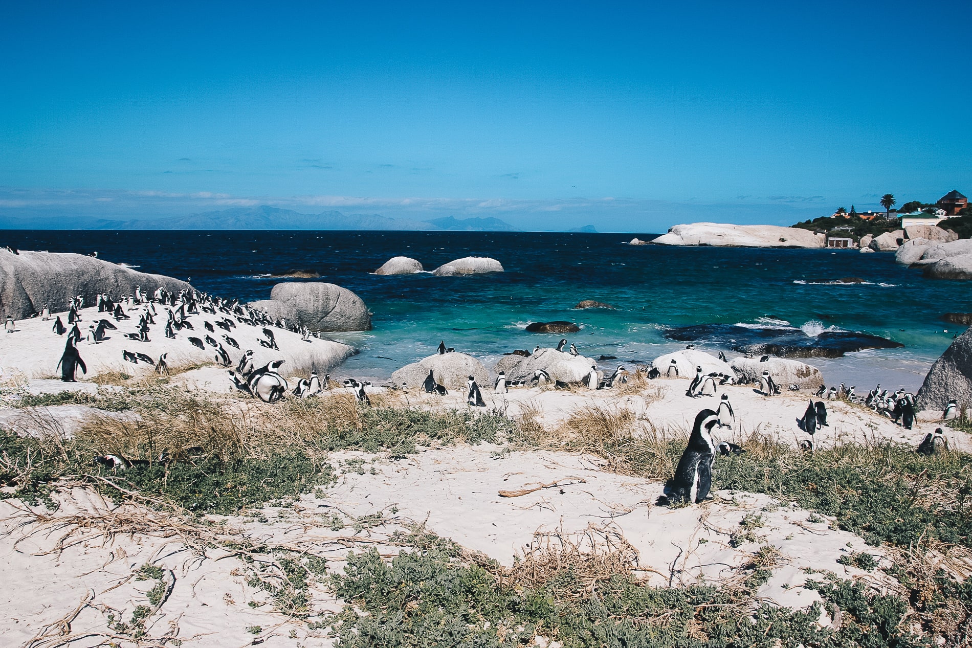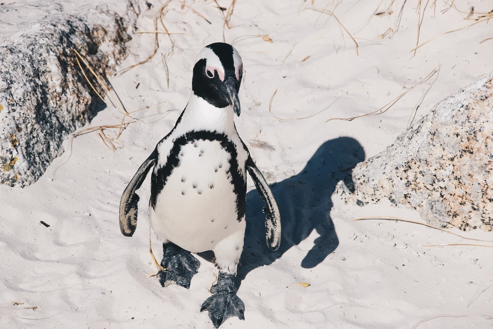 A 45 minute de route de Cape Town, vous trouverez la ville de Simon’s Town. Il faut se diriger vers les Boulders sur Boulder’s beach, ces énormes rochers pour y observer l’une des dernières colonies de manchot du Cap. En effet, elle abrite environ 3000 manchots qui se prélassent tranquillement sur le sable blanc et nagent dans l’eau turquoise.
