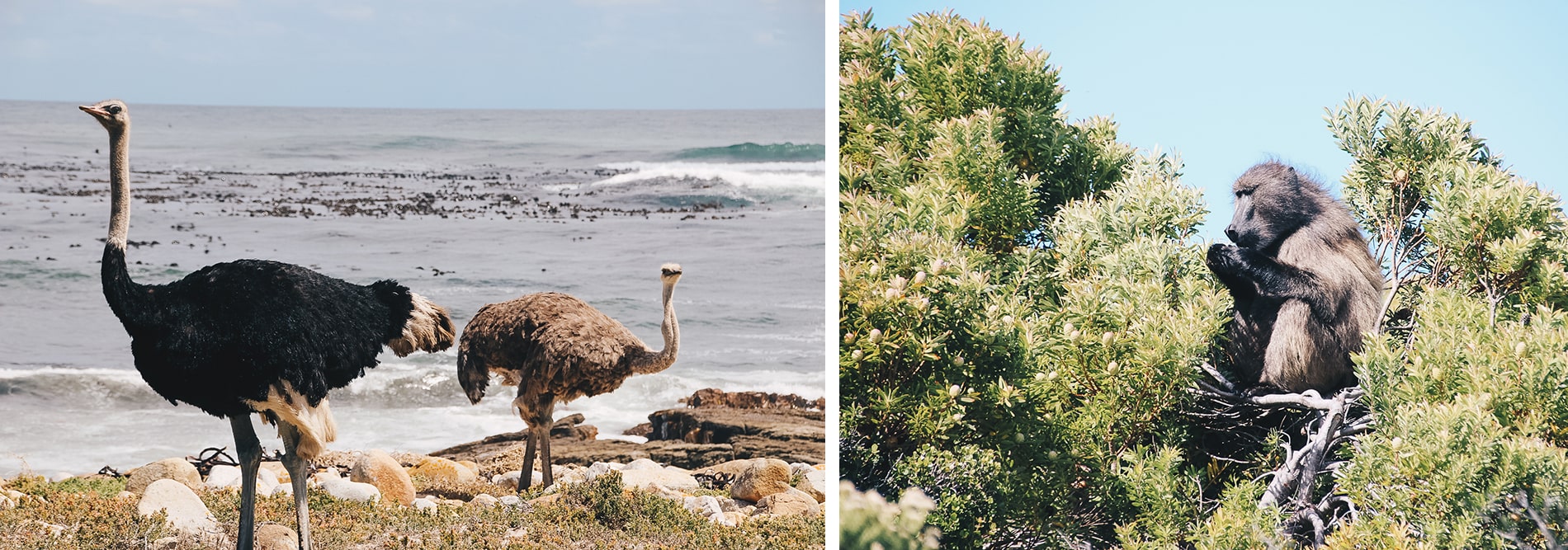 La péninsule du Cap fait partie du parc national de la montagne de la Table. L’entrée est payante et des itinéraires de randonnées peuvent être achetés au Visitor Center. Comptez une bonne journée complète pour visiter cet endroit et profiter de la péninsule avec ses nombreuses plages. Si vous avez de la chance, vous pourrez y voir la famille d’autruche qui habite ces plages désertes.