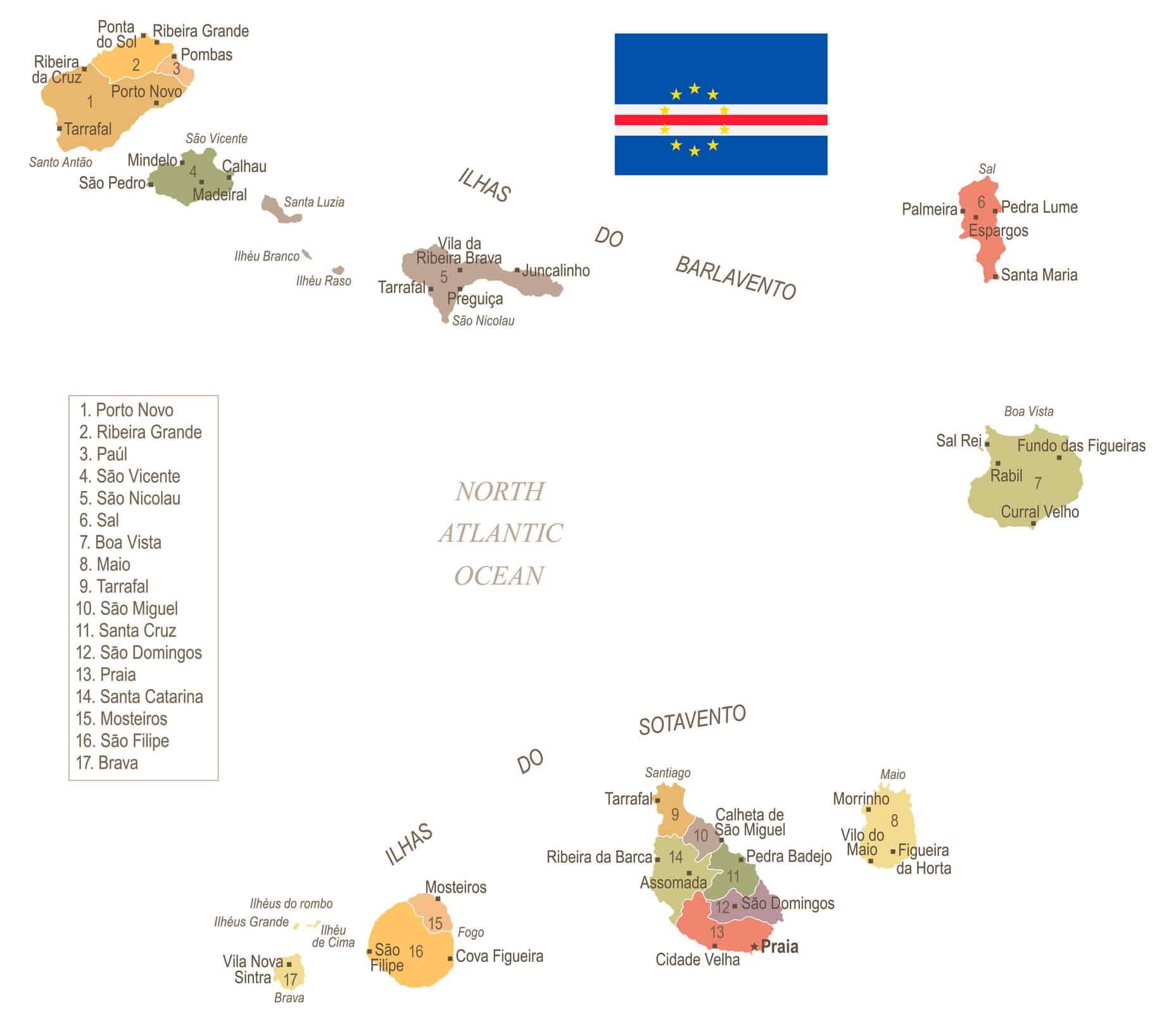 Situé à environ 600 km des côtes du Sénégal, le Cap-Vert s’étend sur plus de 400 km d’océan et regroupe dix îles principales (dont neuf habitées), réparties en deux ensembles : au vent et sous le vent.