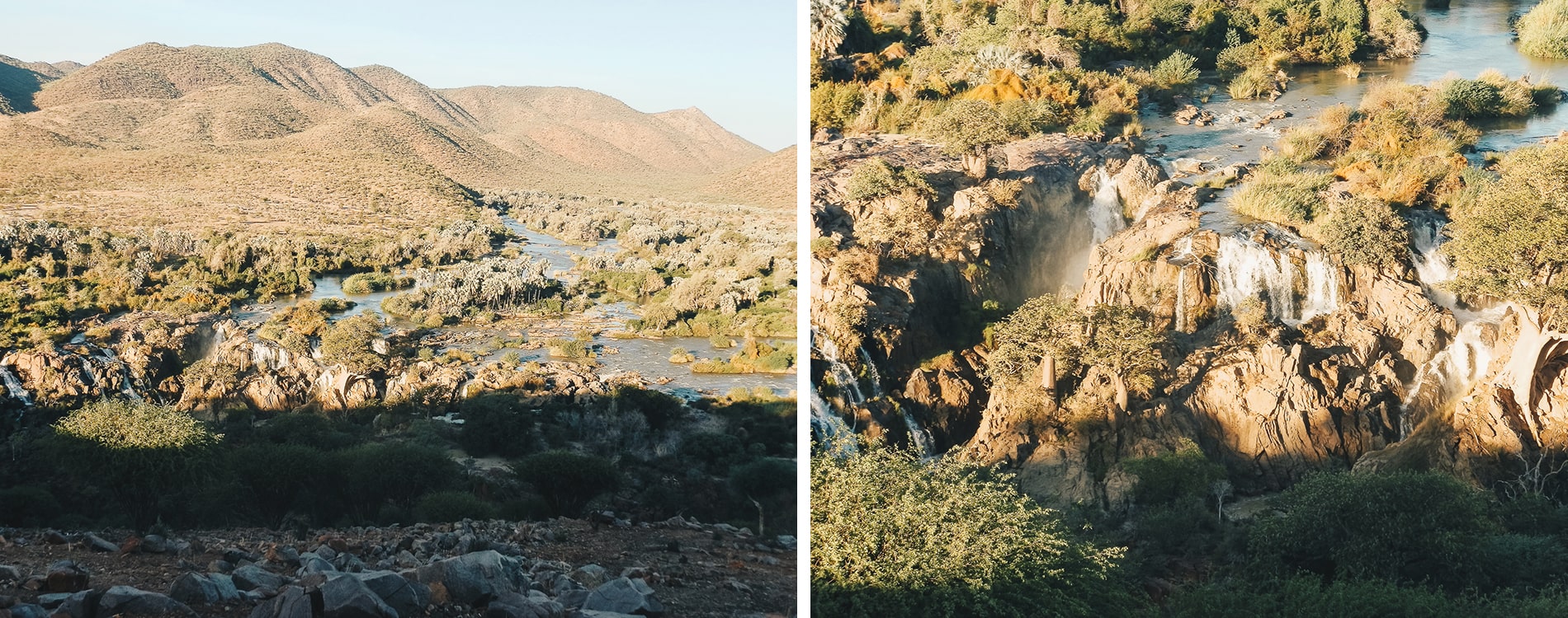 Si vous avez un bon guide, il vous emmènera également découvrir les pistes désertes de Kaokoveld, territoire des Himbas, dénué de routes mais aussi le point le plus septentrional du Damaraland avec Sesfontein, Ruacana, Opuwo et les chutes d’Epupa près de Kukene river, atteignant les 37 mètres de haut. Notre guide nous a fait découvrir le point de vue de la colline accessible à pied ou en 4×4, un endroit paisible parfait pour y prendre l’apéritif et contempler les chutes au coucher du soleil.