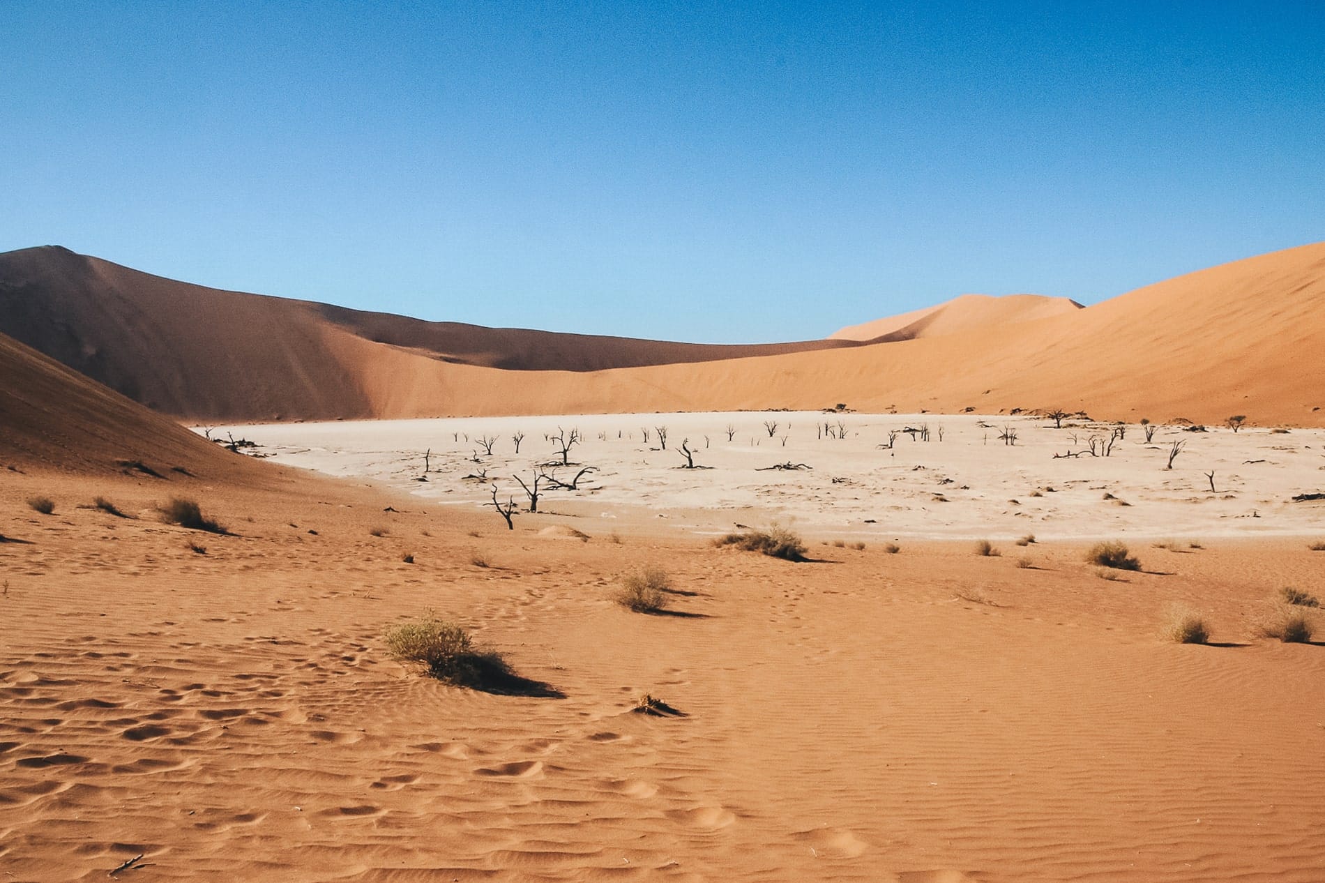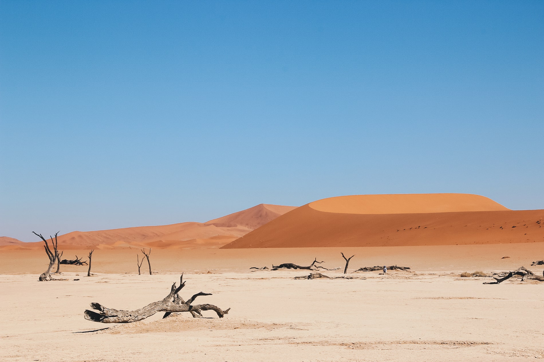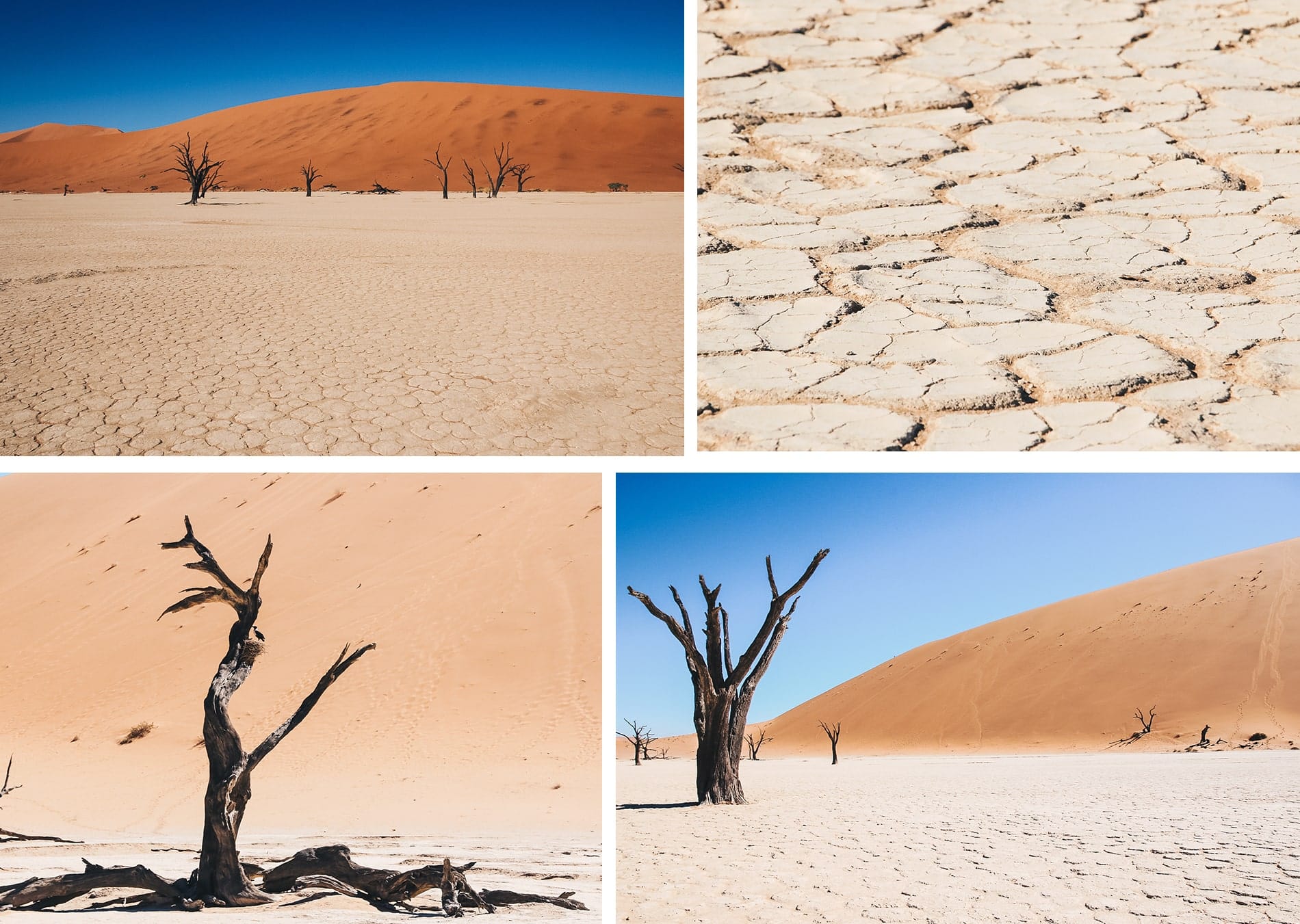 Sossusvlei est l’une des plus belles étapes de ce voyage. Ce site naturel somptueux, situé dans le désert du Namib dans le parc de Namib Naukluf est surement le plus photographié du pays. Il est connu mondialement pour ses dunes de sable rouges orangés de plus de 300 mètres de haut (au passage les dunes les plus hautes du monde) et son sol asséché à la géométrie parfaite, avec ses multitudes losanges de sel écru. C’est l’un des endroits les plus spectaculaires d’Afrique Australe.
