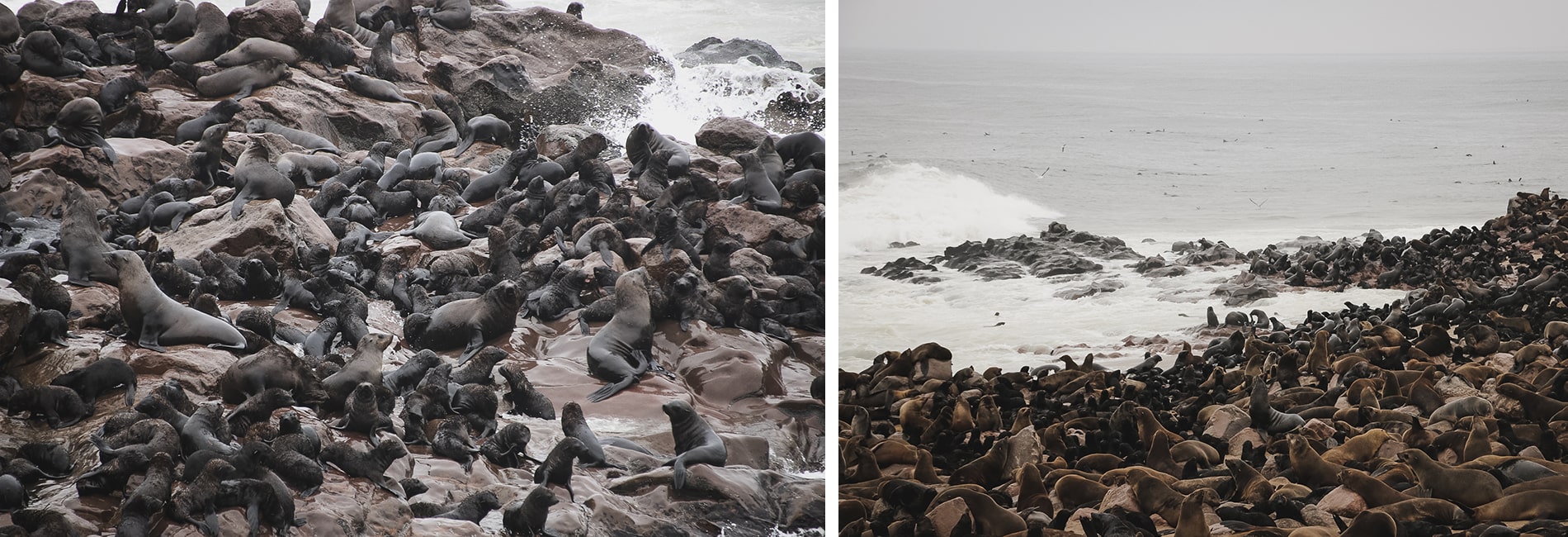 Entre le Namib et l’océan se trouve Cape Cross, réputé pour sa colonie d’otaries. Et qui n’a jamais rêvé de voir de très près des otaries une fois dans sa vie ? Et bien nous, nous en avons vu pas une, ni dix mais bel et bien 100 000 sur une même plage et c’est à Cape Cross, sur la côte ouest du Pays que cela se passe! Après avoir roulé 2 heures sur de longues routes droites interminables, vous atterrissez sur la côte Atlantique de la Namibie. Moyennant quelques euros pour l’entrée, environ 5€, vous pourrez admirer cette colonie d’otaries se relaxant sur le sable ou courant à faible allure vers la mer. On y vient pas pour l’odeur nauséabonde qui se dégage mais pour le paysage spectaculaire que nous offre ces mammifères, plutôt individuels et agressifs.