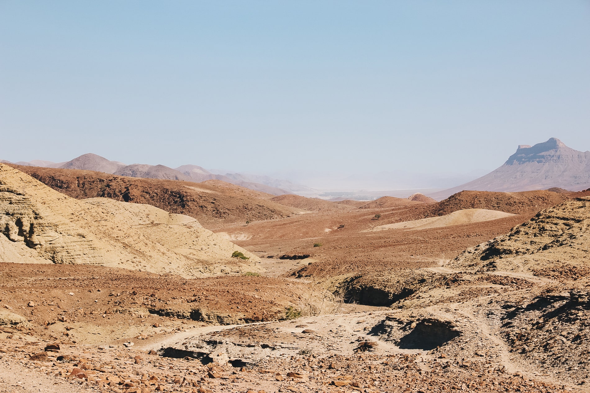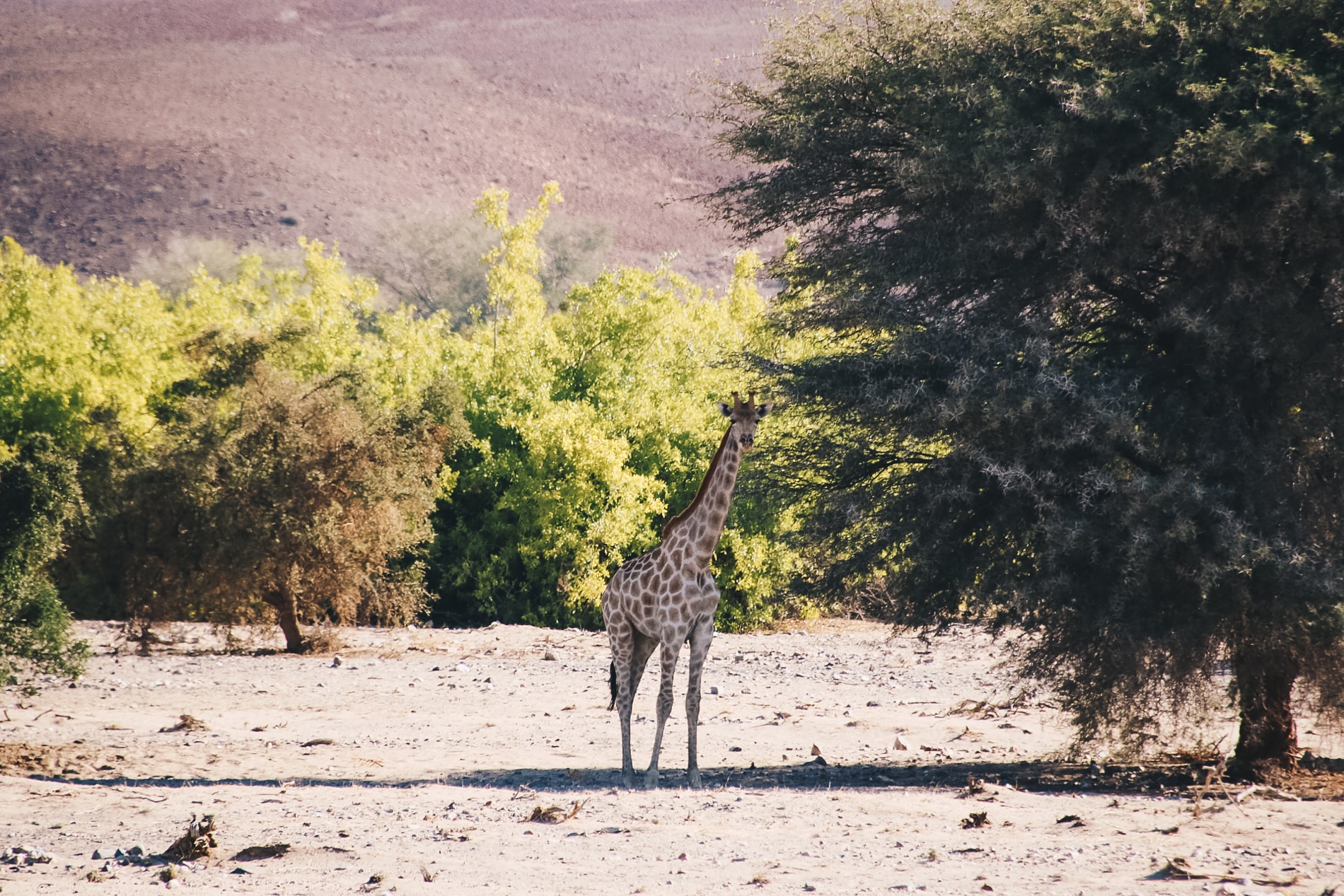 La Namibie regorge de sites naturels spectaculaires et surprenants dans tout le pays comme la vallée Hantmann. Lorsque vous louez un véhicule de type 4×4 robuste avec un guide, et bien vous avez l’avantage de pouvoir découvrir d’incroyables paysages sur une seule et même journée: rivières asséchées ou en pleine saison des pluies rivières boueuses, déserts de sable rouge, montagnes arides et de granit, mais aussi paysages lunaires et animaux sauvages comme des girafes ou des singes. Vous allez vite comprendre pourquoi la Namibie est une terre où de nombreux films et publicités sont tournés. Des décors qui ressemblent aux roches rouges de l’Arizona, d’immenses palmiers plantés au milieu des pistes de sable qui vous rappellent le Maroc ! Nous vous conseillons vivement de prendre un guide local car nous n’avons vu aucun panneau sur les pistes, il vaut mieux connaître la région car vous pouvez très vite vous perdre!