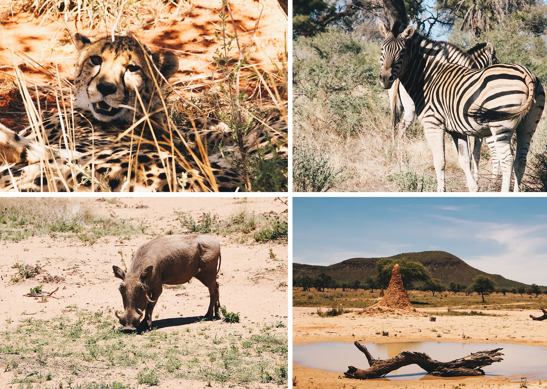 C’est ici que se tient la fondation « Africat Foundation », un centre de réhabilitation de guépards et un parc animalier sur 22 000 hectares. Le but est de conserver et protéger les guépards mais aussi les léopards. En Namibie, les fermiers ont tendance à tuer les guépards pour protéger leurs troupeaux. Le centre veut les inciter à protéger leur bétail en y installant des barrières autour, ce qui permettrait de sauver cette espèce en voie de disparition. Dans cette réserve, vous pourrez partir à la découverte de ces gros félins, accompagné d’un guide ranger, soit à la journée soit sur plusieurs jours.. La fondation abrite également une clinique qui permet de soigner les animaux blessés jusqu’à qu’ils grandissent et qu’ils soient relâchés dans la réserve. Elle accueille également une école de 3 classes, financées par le gouvernement namibien, qui permet de sensibiliser les enfants mais également les fermiers pour la protection de ces prédateurs félins.