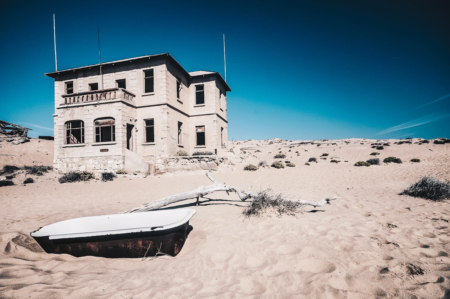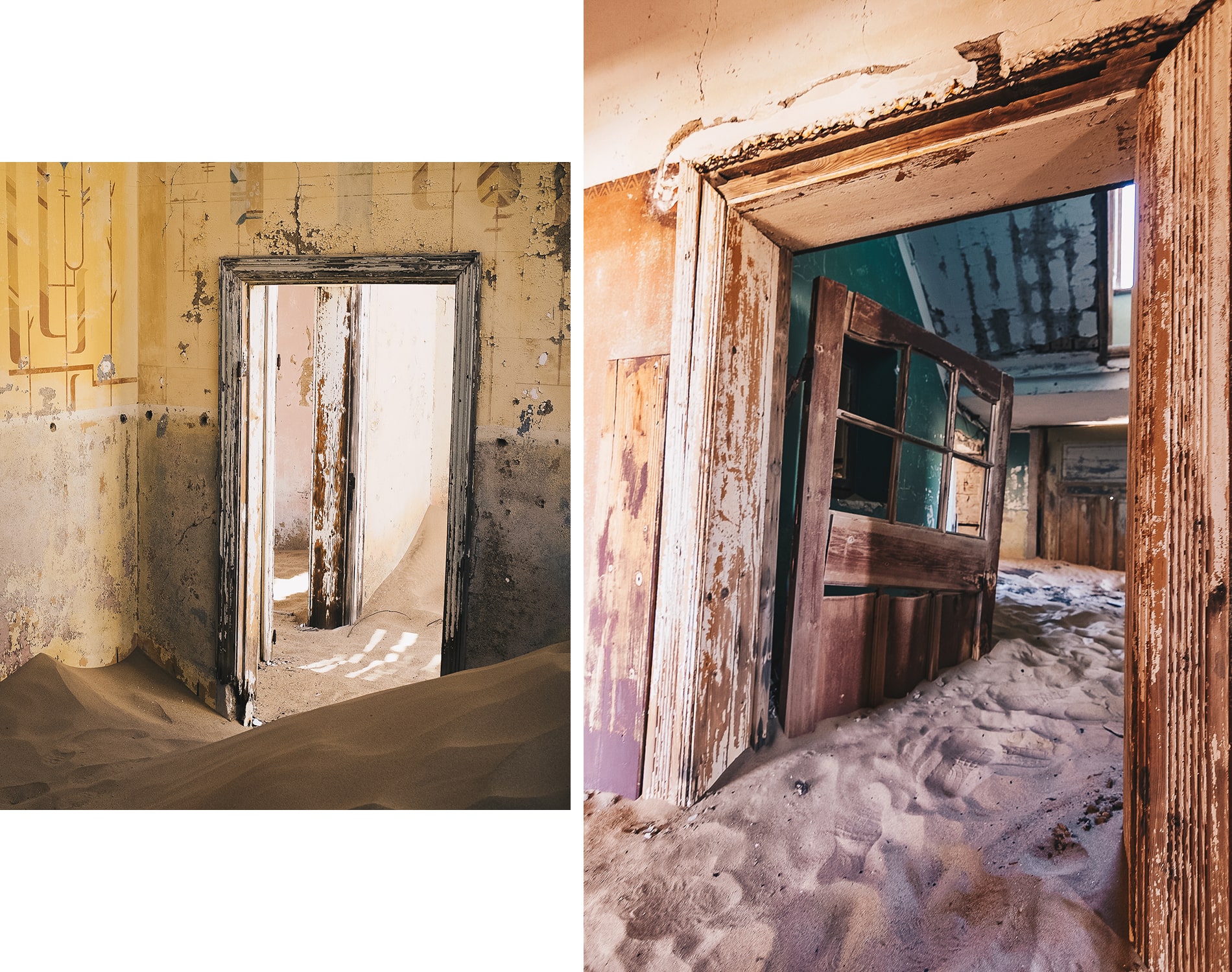 La Namibie c’est aussi des lieux improbables comme la célèbre Sand House, la maison de sable à Kolmanskop, dans le désert de Namib (dans le sud est du pays). Cette ancienne ville minière était renommée par son exploitation de diamants. Après la 1ère guerre mondiale, le cours du diamant a chuté et la ville a été abandonnée peu à peu. Le sable a repris sa place et enseveli une grande partie la ville et les intérieurs des maisons. L’atmosphère est à la fois étrange et unique, c’est un endroit incontournable pour les amoureux de la photo.