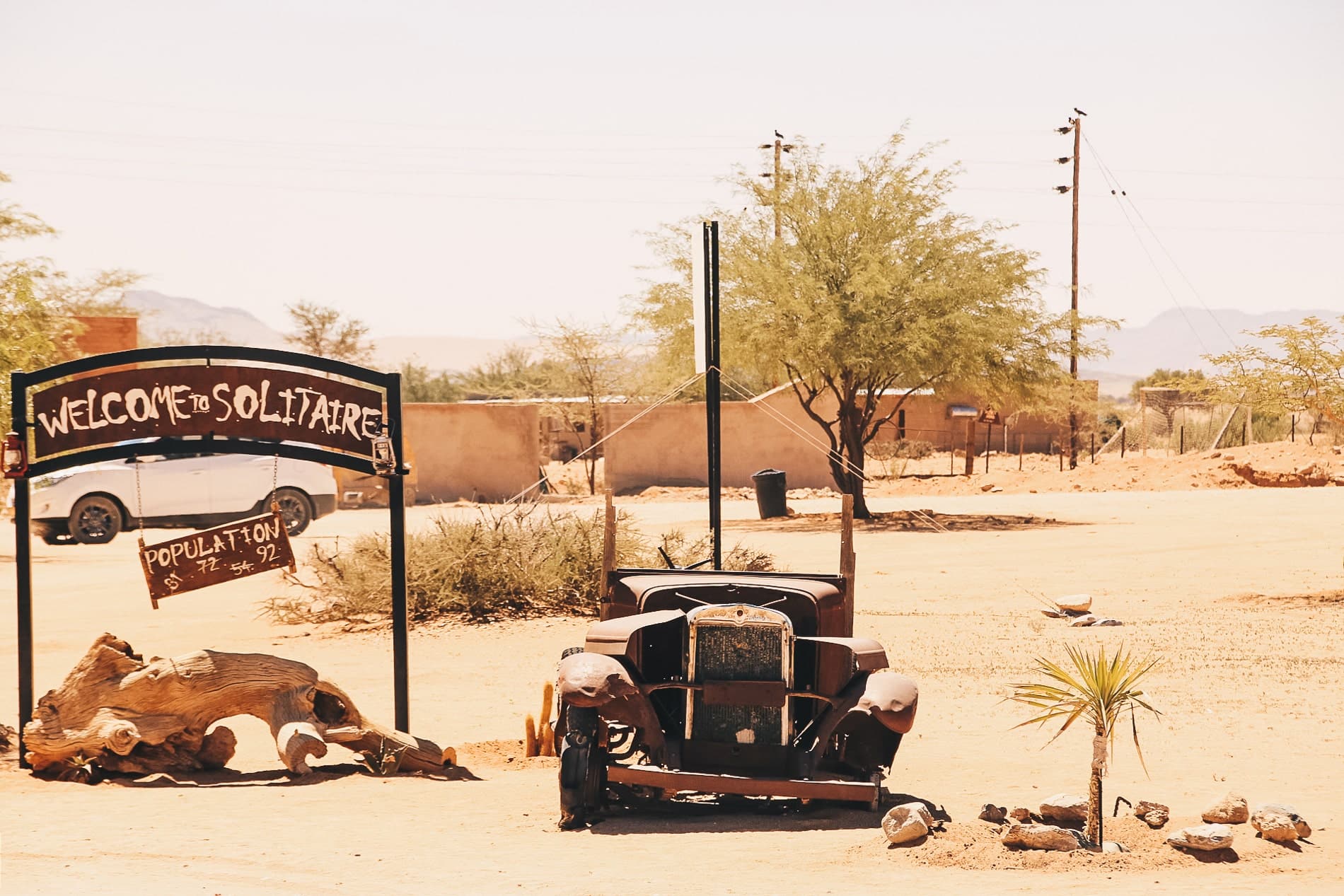 Solitaire est facilement accessible puisque cette toute petite ville est située sur la route pour vous rendre dans le désert du Namib. On s’y est vraiment arrêté pour y faire une petite pause mais sachez que vous pouvez dormir dans deux Lodges charmants non loin: