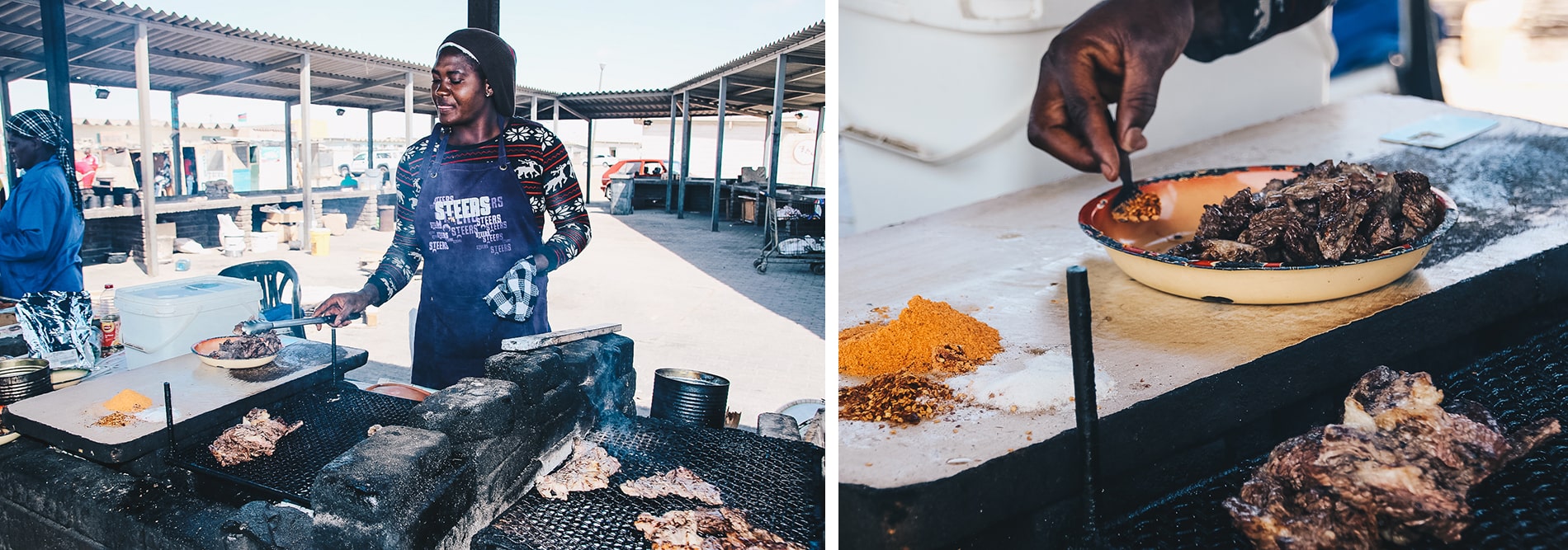 La ville de Swakopmund située à 1h30 de Cape Cross, est charmante avec son style architectural allemand traditionnel. En février nous n’y avons pas croisé beaucoup de voyageurs et parfois nous avons cru être dans une ville fantôme ! Nous avons particulièrement aimé nous balader dans les townships colorés de la ville et nous arrêter déjeuner sur le petit marché local du coin pour y manger de la viande de bœuf préparée sur le tas, accompagnée d’un petit pain qui a le gout d’un beignet sucré.