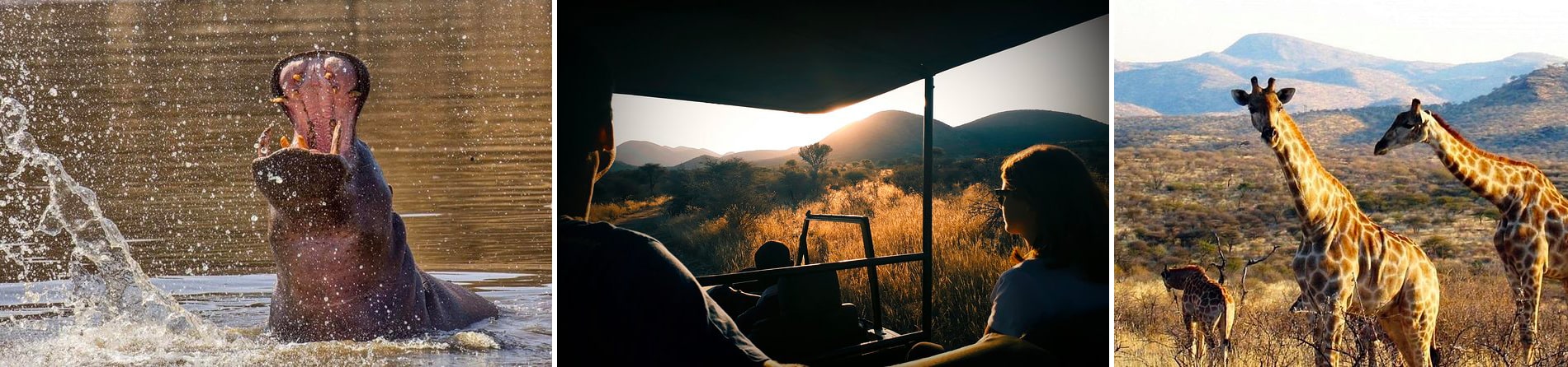 Ce safari vous emmène depuis Windhoek à Durstenbrook Guest Farm pour un après-midi d’observation de gros gibiers. Vous pourrez voir de près des guépards et les léopards mais aussi des gnous, des springboks, des koudous, des oryx, des girafes, etc. Il y a également un barrage sur place pour voir le troupeau d’hippopotames résident se vautrer dans la boue. Deux safaris dans la ferme Durstenbrook sont proposés pour voir des animaux sauvages dans leur habitat naturel. Tous les animaux sont en très bonne forme et disposent de beaucoup d’espace.