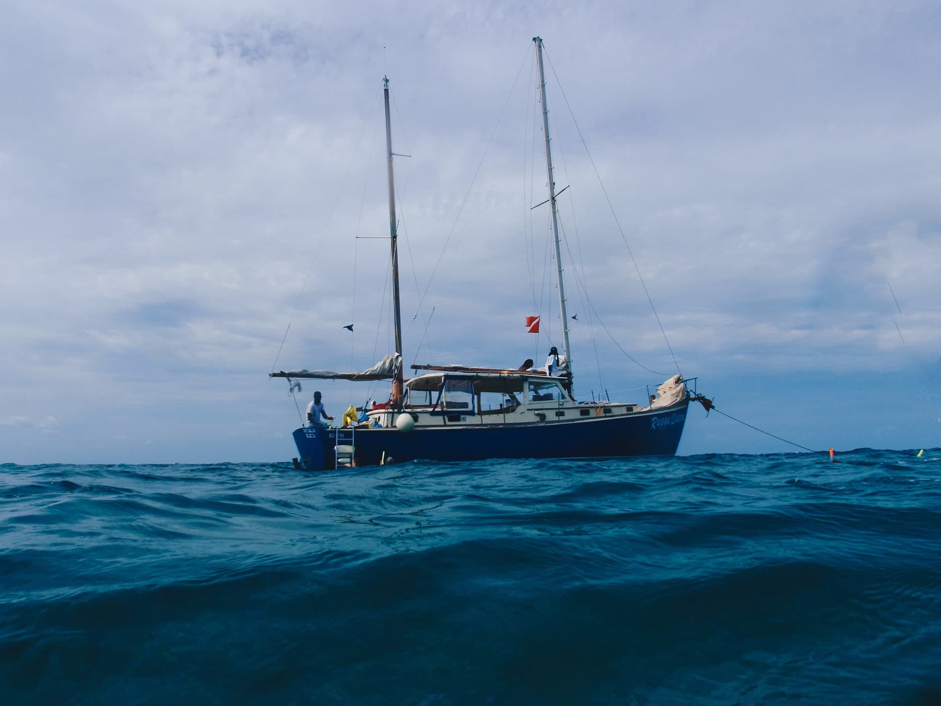 Le départ se fait tôt le matin, à 6h. J’étais un peu angoissée car je ne savais pas ce qui m’attendait. Après 2h30 de tape cul sur un speed boat, nous arrivions sur la zone. Vu du ciel, le Blue Hole ressemble a un cercle bleu marine entouré d’eaux turquoises. Vu d’en bas, le temps est gris, les eaux étaient noires et la mer agitée, une météo plutôt capricieuse pour le mois de janvier ! Cela me faisait d »un coup moins vibrer. Un frisson m’a envahit tout le corps mais rien de grave, j’allais plonger à 40 mètres de profondeur !
