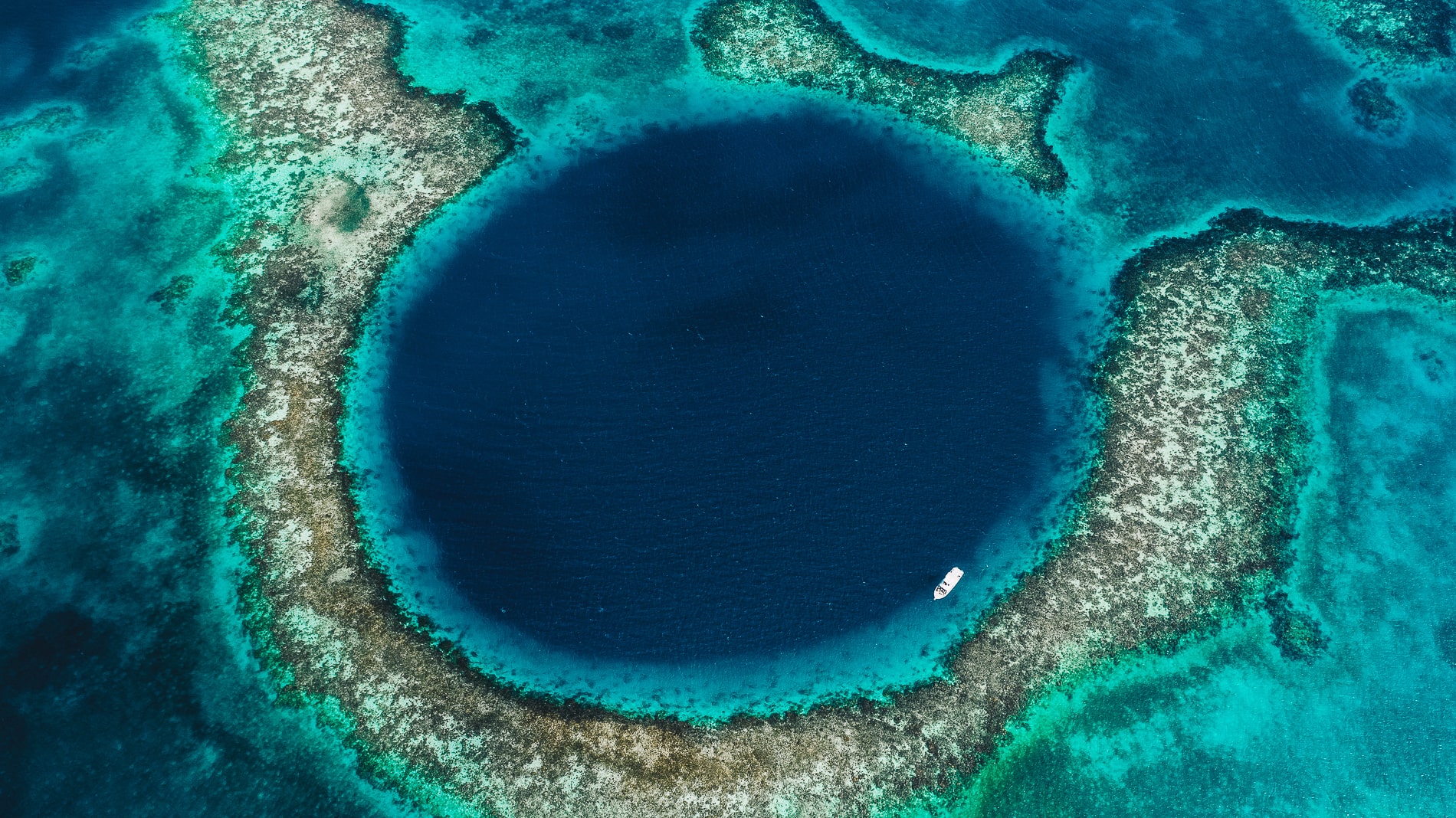 On vient principalement au Belize pour explorer Le Blue Hole, le site de plongée le plus célèbre et mythique de l’île découvert par le commandant Cousteau dans les années 1970. Ce sont des grottes calcaires qui se sont effondrées à l’ère glaciaire. Aujourd’hui, c’est un large trou de 300 mètres de diamètre et de plus de 120 mètres de profondeur réputé pour ses stalactites et stalagmites qui peuvent atteindre 8 mètres. Ce « trou bleu » comme on l’appelle, est splendide et plus spectaculaire vue du ciel que par bateau mais une fois sous l’eau, vous êtes enivrez par les profondeurs !