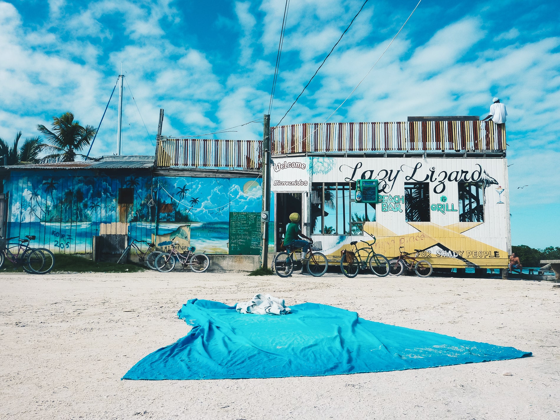Cake Caulker est un minuscule îlot d’à peine 2 kilomètres de long et 500 mètres de large. La traversée de la ville se fait en moins de 15 minutes de marche. Il n’y a pas grand chose sur cette île mais qu’est ce que nous l’avons adoré ! Pas de voitures (à part quelques voiturettes de golf pour les gros flemmards), les rues sont en sable et on se balade pieds nus dans ce village aux faux airs de village de vacances. Les locaux sont supers cool et décontractés. En me voyant avec mon sac à dos, chargée comme une mule, cherchant dans tous les sens une auberge pour dormir, ils me criaient en anglais, une bière à la main et assis dans leur transat : GO SLOW MI AMOR, LIFE IS GOOD, TAKE YOUR TIME ! (Ralentis ma chérie, la vie est géniale, prends ton temps ! à prononcer avec un accent hyper coooooool détente )
