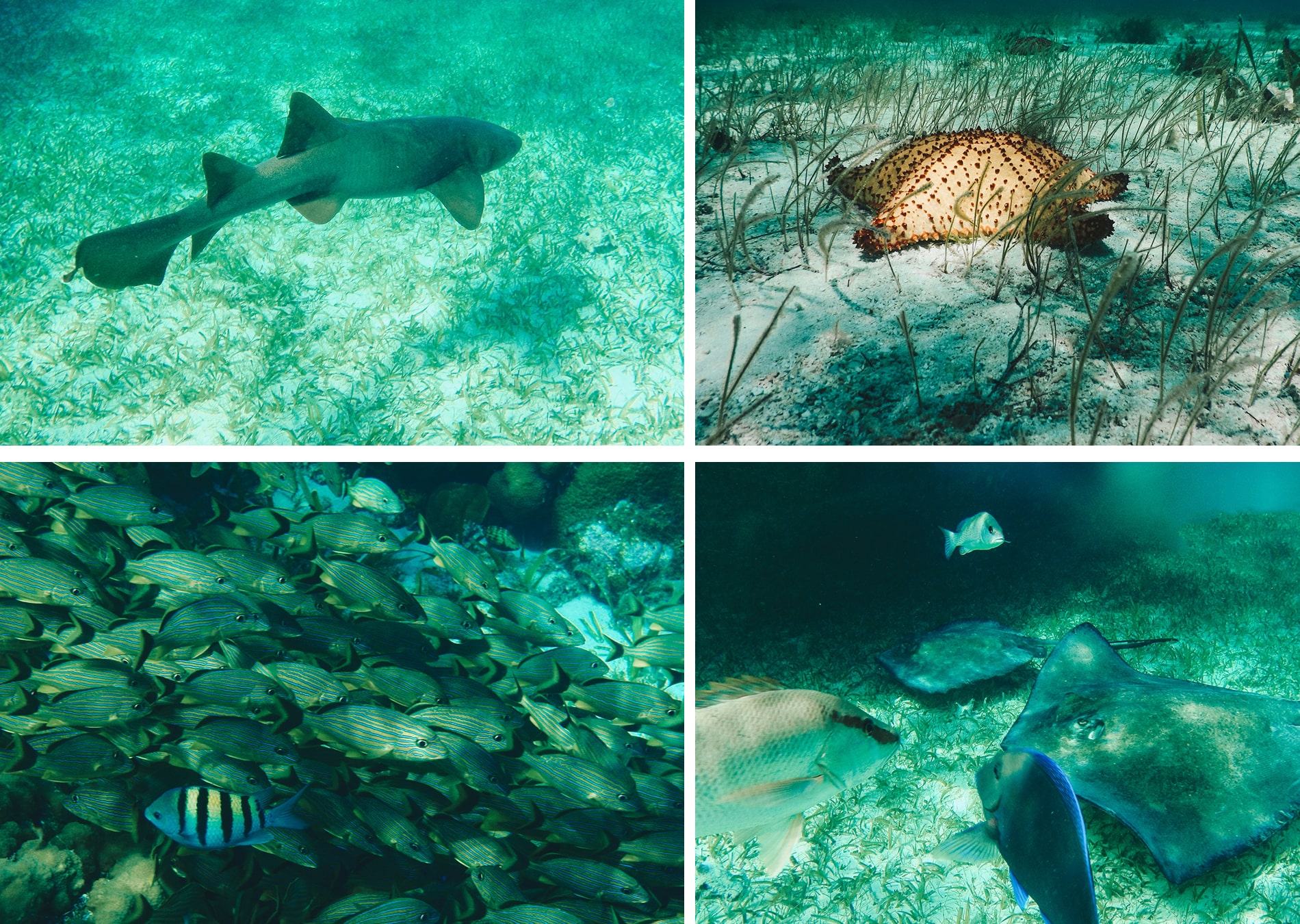 D’ailleurs à l’entrée du village, on peut voir un panneau avec la devise de l’île : « go slow » traduction ralentis ! C’est ici que nous allions souffler mais aussi prendre le temps de nous reposer sous ces cocotiers, nous baigner dans ces eaux cristallines et contempler cette faune marine. On ne s’est pas lassé pas une seule seconde de son ambiance : une vie au ralenti, des habitants adorables, des cocktails à gogo, des barbecues de langoustes le soir sur la plage, quelques pauses baignades, de jolies petits maisons colorées et plusieurs centres de plongée/snorkeling qui vous proposent leurs services. On se croyait en Jamaïque! J’adorais aussi observer la vie des insulaires qui revennaient au port, chargés de conques, ces gros coquillages à déguster en soupe ou en ceviche!