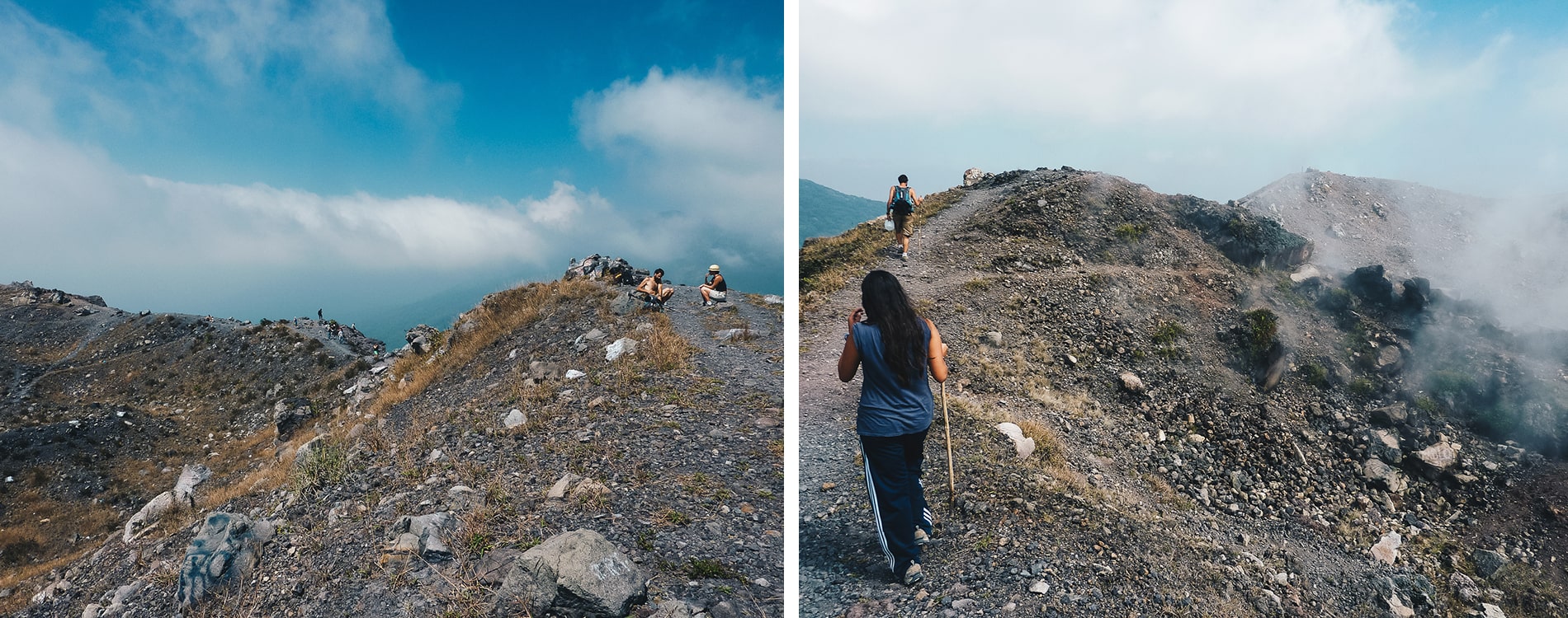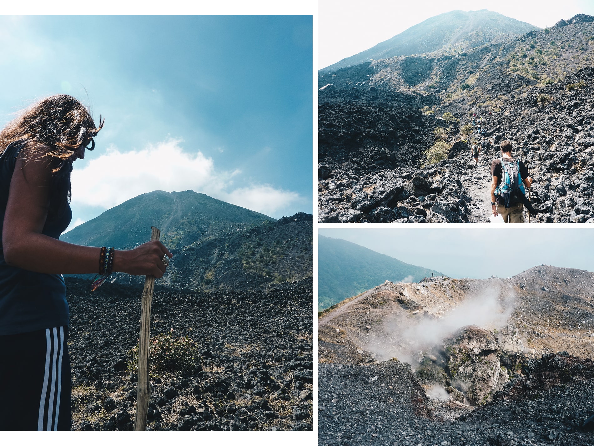 Nous avons décidé de grimper le plus jeune volcan du pays, Izalco. Il gagne le surnom de « phare du Pacifique » car les marins pouvaient le voir de très loin. Il est aujourd’hui l’une des icônes du Salvador. Le volcan n’est pas très haut, 650 mètres de hauteur mais la montée n’est vraiment pas facile. Le volcan est exposé en plein soleil, et il faut grimper un des flancs sous une chaleur écrasante. Vous vous enfoncez alors dans des roches volcaniques et des cailloux, vous glissez, vous avancez dans du sable, vous reculez de 10 mètres et vous peinez à monter! A ce moment la, j’avais juste envie de hurler et de tout arrêter ! Mais croyez moi, la récompense en haut du cratère est incroyable : effluves de souffre qui surgissent du cratère, une vue imprenable sur le Cerro verde, les étendues vertes du Salvador et l’Océan Pacifique. Un pur moment de bonheur!