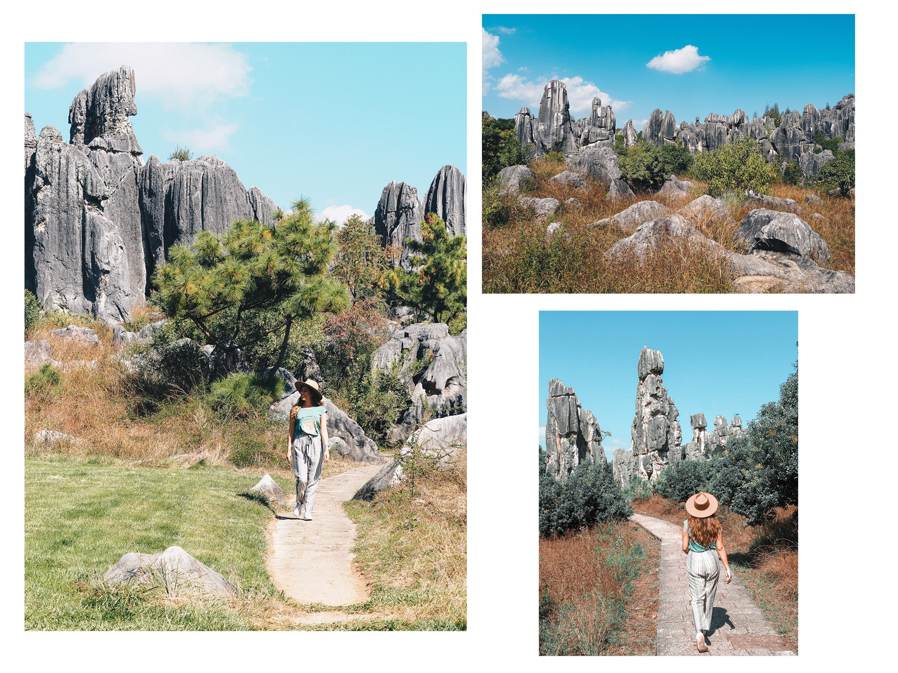 A 1h30-2h de route de Kunming, se trouve la très belle forêt de pierres de Shilin. Ce parc de plus de 8 hectares comporte des sommets karstiques en calcaire formés il y a 270 millions d’années. A première vue, je n’étais pas emballée par l’endroit car l’entrée du parc est très propre, bien aménagée, encore une fois fait pour les touristes mais finalement en s’enfonçant dans les nombreux sentiers, on peut se promener dans des formations naturelles assez vertigineuses où certains pics atteignent jusqu’à 30 mètres de haut. Le paysage pourrait ressembler à un décor de film avec tous ces labyrinthes de pierres. N’hésitez pas à vous perdre et sortir des chemins balisés car c’est une belle balade à faire qui nécessite au moins 2h à 3h de marche. Nous nous sommes aventurés jusqu’au premier point panoramique qui vous donnera un bel ensemble sur cet immense site.