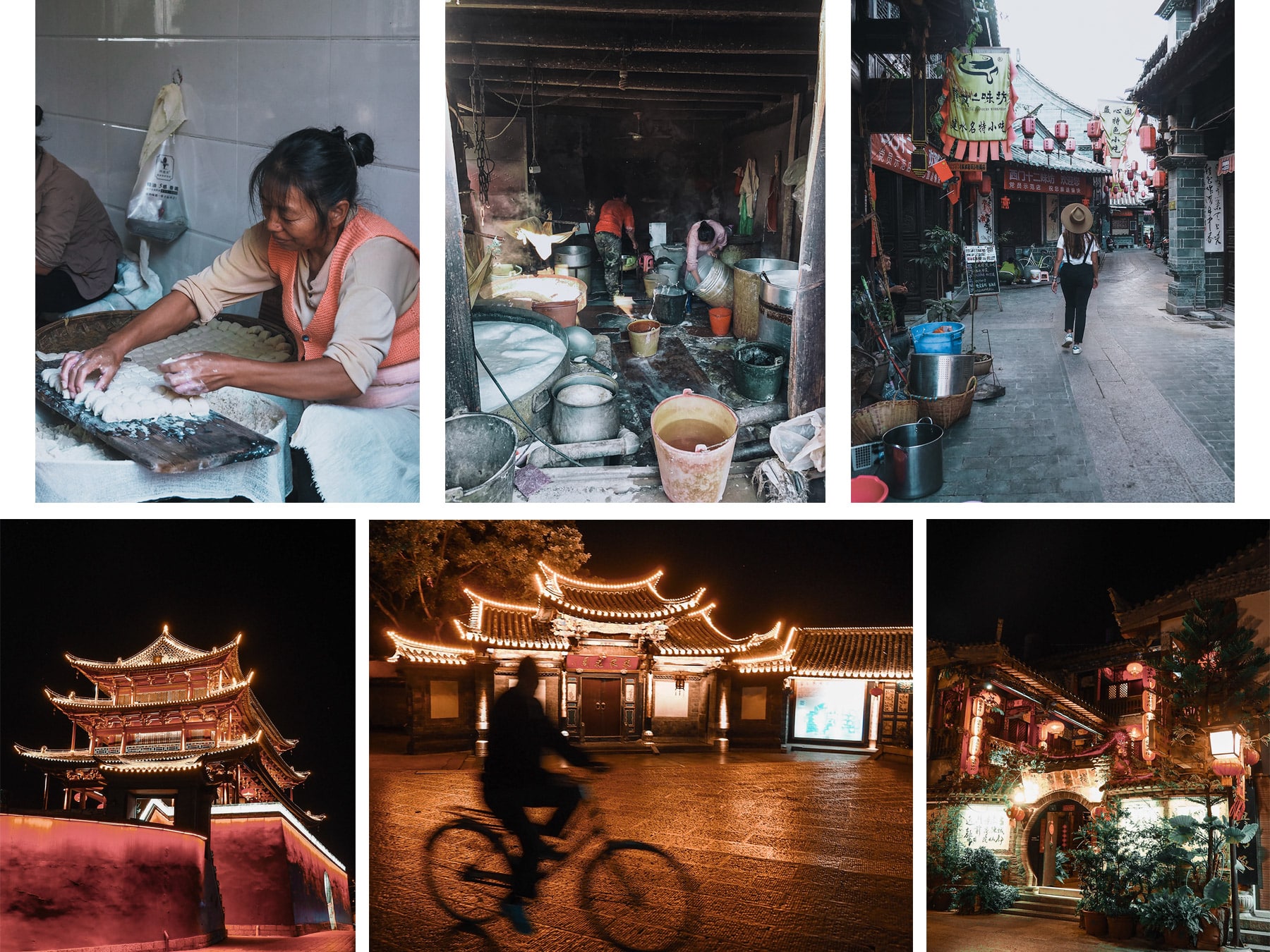 A 4h de route des rizières se trouve Jianshui réputée pour ses poteries en terre rouge. Cette jolie ville au sud de Kunming dévoile une beauté d’architecture traditionnelle qui m’a totalement séduite! Cette ville se prête aisément à la flânerie, au magasinage et au repos. Elle est réputée pour le temple de Confucius, le deuxième plus grand en Chine après celui de Qufu mais aussi pour les jardins zen et bien entretenus de la famille Zhu et la grande porte rouge Choayang datant de 1389 qui marque l’entrée de la vieille ville. Sur le bas de la tour se tient un petit marché aux oiseaux tandis que l’étage de la tour abrite un salon de thé. C’est une très jolie découverte qui se visite aussi bien de jour comme de nuit. On s’est laissé tenté par une balade nocturne pour photographier les scènes de vie.