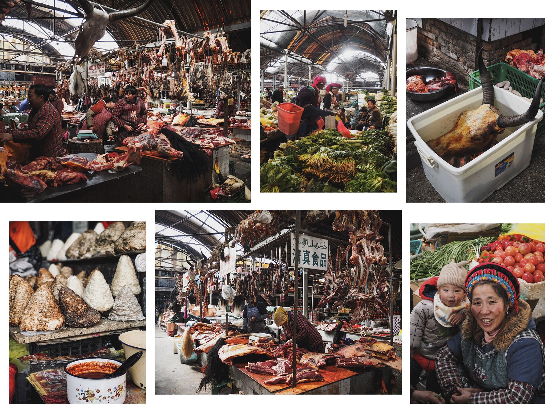 Côté rencontres, costumes traditionnels et dépaysement, il faut absolument faire un tour au marché de Shangri-La située en ville sous une immense halle, c’est une expérience à part entière. On y retrouve des fruits et légumes, des ustensiles de cuisine mais surtout des allées dédiées à la viande de Yak! mes sensibles s’abstenir! J’ai vu une femme nettoyer une tête de Yak dans un sceau d’eau rouge, des bouchers découper des têtes, des queues, des entrailles et j’en passe! C’est un lieu qui grouille de monde où les scènes de vie sont géniales, un endroit parfait pour les photos. Enfin pour les amoureux des paysages et des sensations, je vous invite à prendre le téléphérique pour atteindre la montagne Shika à 4500 mètres d’altitude! La montée dure environ 40 minutes et une fois arrivés au sommet, vous avez de longues passerelles en bois déjà tracées et parfaites pour les prises de photo. Je n’ai pas ressenti l’effet de l’altitude mais sachez qu’il a fait très froid en haut, un bon -10 degrés ressenti!
