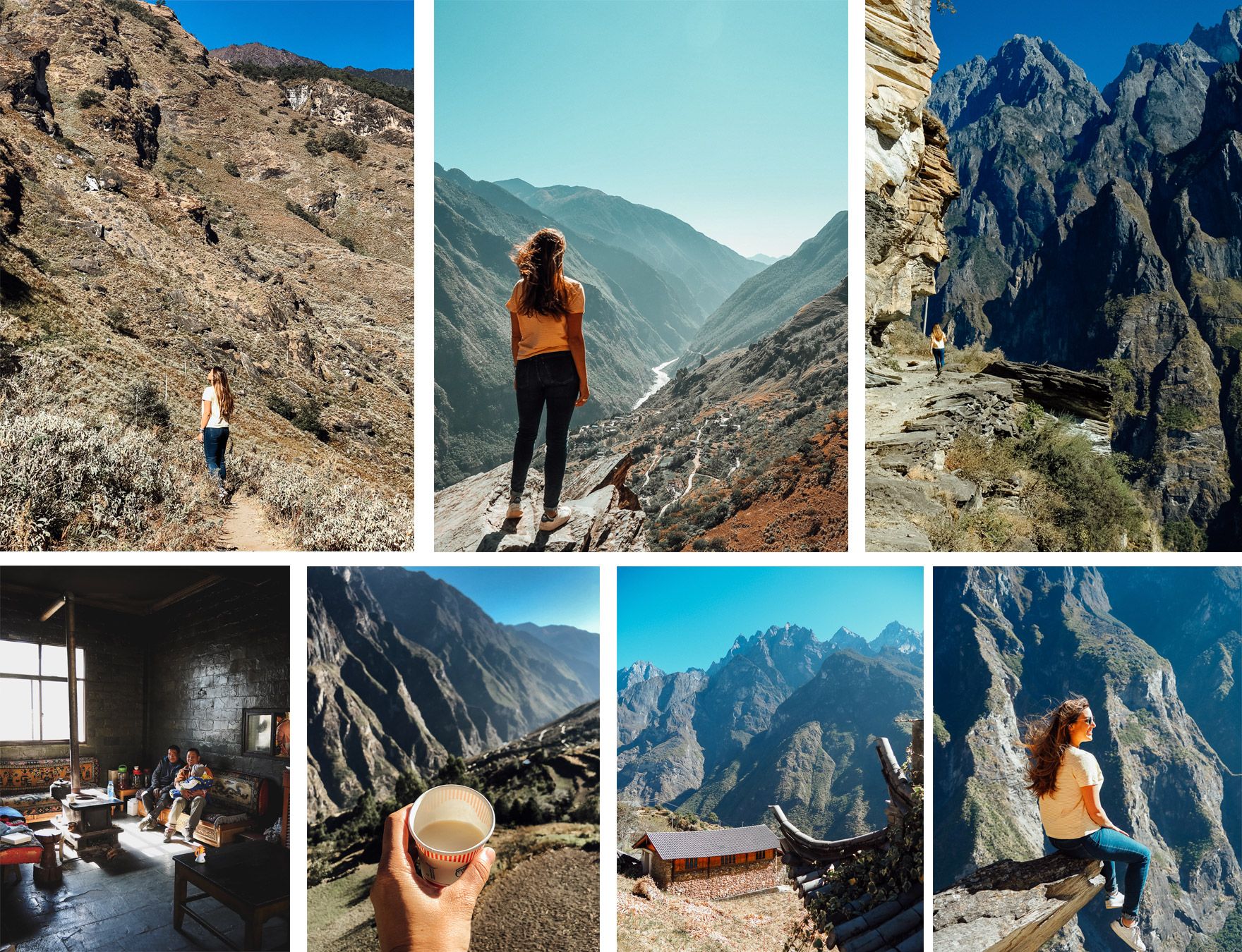 Au tout début de la randonnée se trouve la Jane’s Guest House, une auberge sommaire qui distribue des cartes de trek et la Tea Horse Guesthouse. Vous pouvez y laisser le sac à dos et le récupérer à la fin du trek. Comptez environ 35 yuans le lit en dortoir de 6. Sinon vous pouvez dormir à mi parcours à Halfway Guest House. C’est ici que nous avons bu un verre sur la terrasse, face au magnifique panorama sur la gorge. Comptez40 yuans le lit en dortoir de 6.