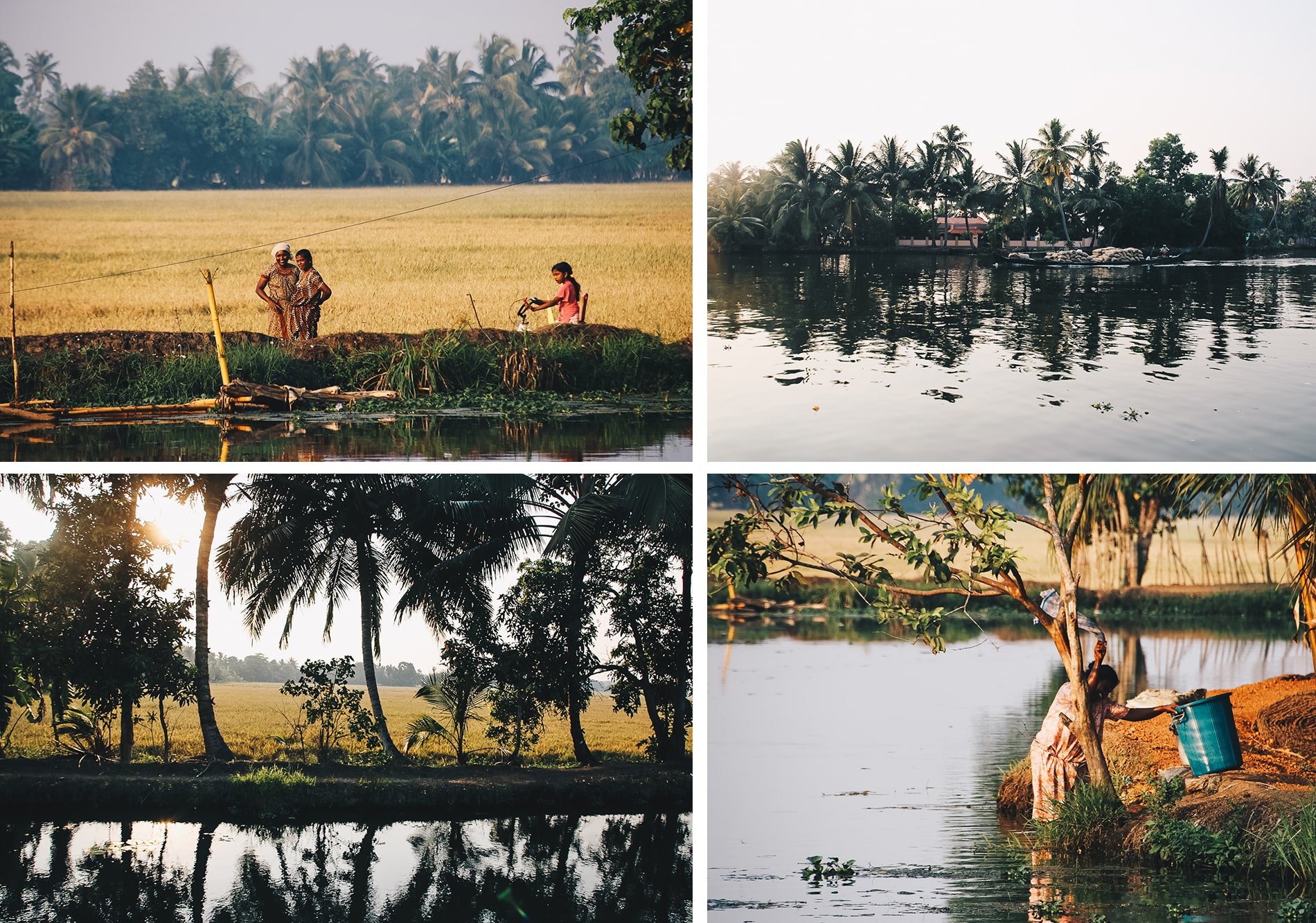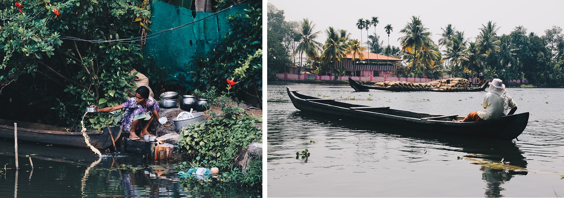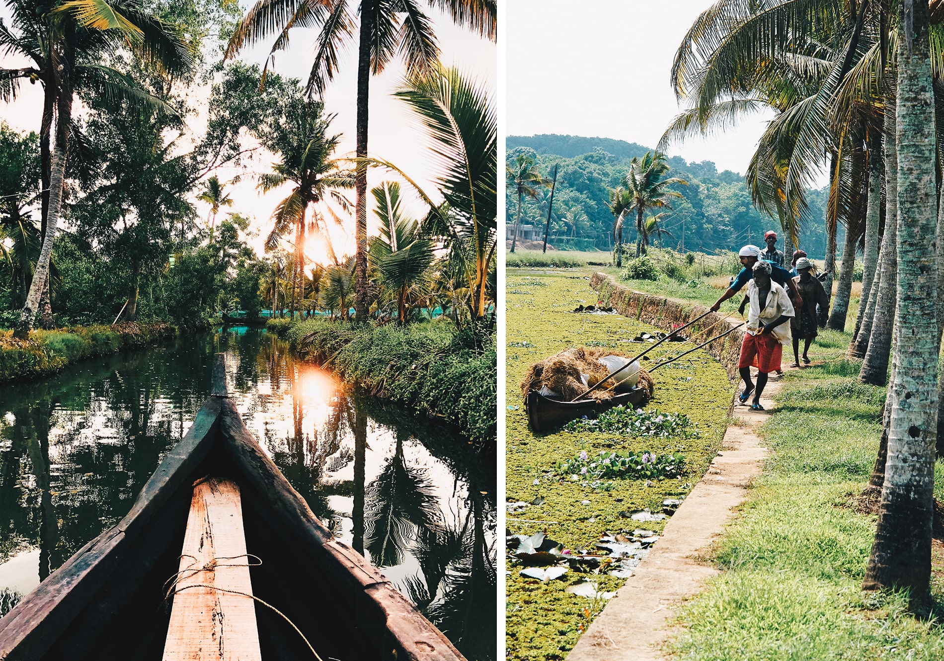 Nous sommes vraiment tombés sous le charme des backwaters mais si nous devions vous aider à faire votre choix, nous avons préféré le petit bateau qui vous emmène dans le cœur des backwaters. Au fil de l’eau, on découvre de très jolies scènes de vie, on rencontre des populations locales, on prend le temps d’apprécier chaque instant, chaque endroit c’est si beau et si paisible! Lorsque vient le coucher de soleil, ces moments sont encore plus intenses, le soleil passe à travers les nombreux cocotiers et la magie opère. Les rizières entourant les canaux dessinent alors un décor magique, et nous avons été envoutés par les sourires des gens qui nous saluaient sur les rives tandis que nous parcourions les canaux en bateau sous la lumière du coucher de soleil. Une étape à ne surtout pas manquer