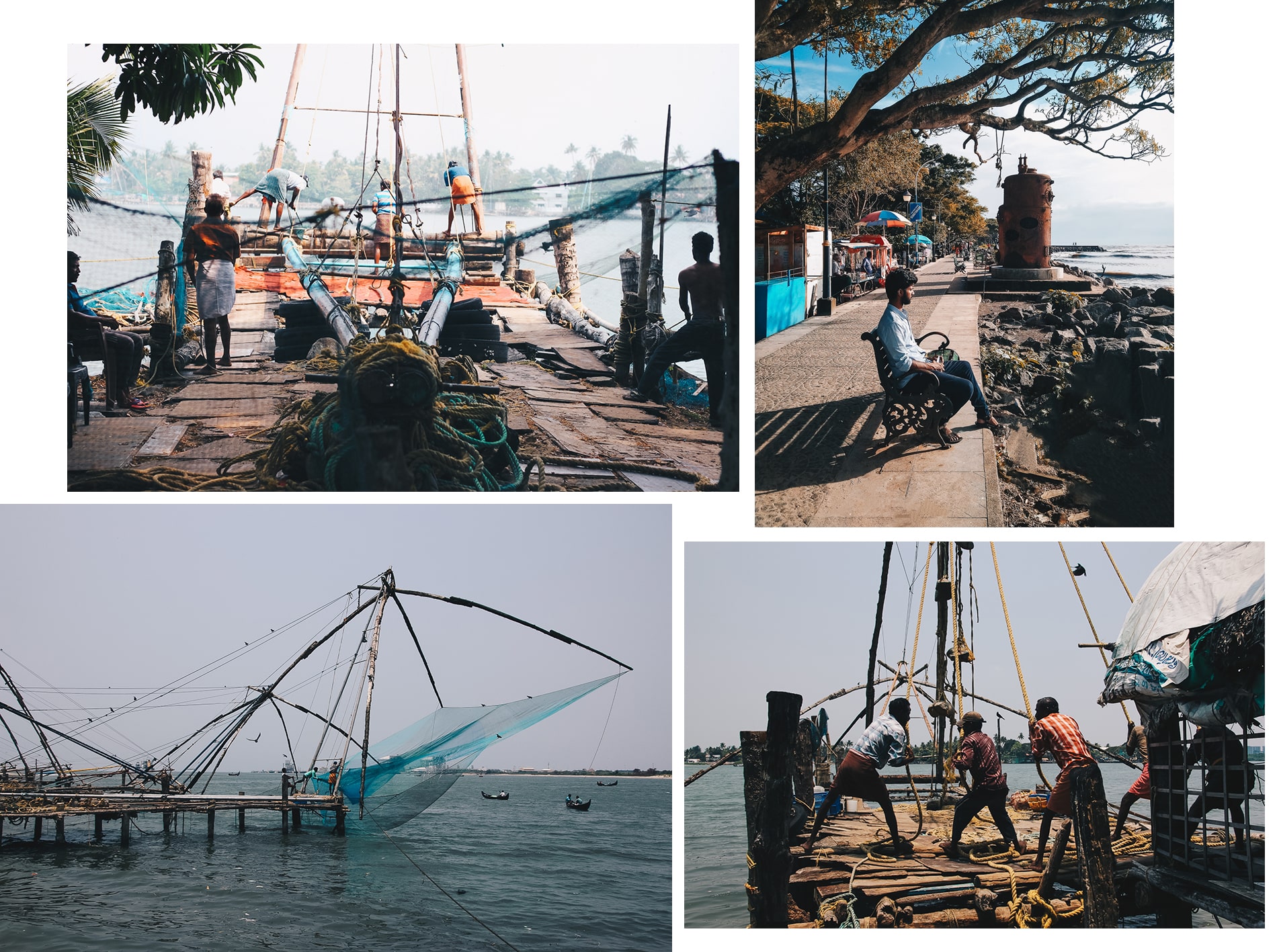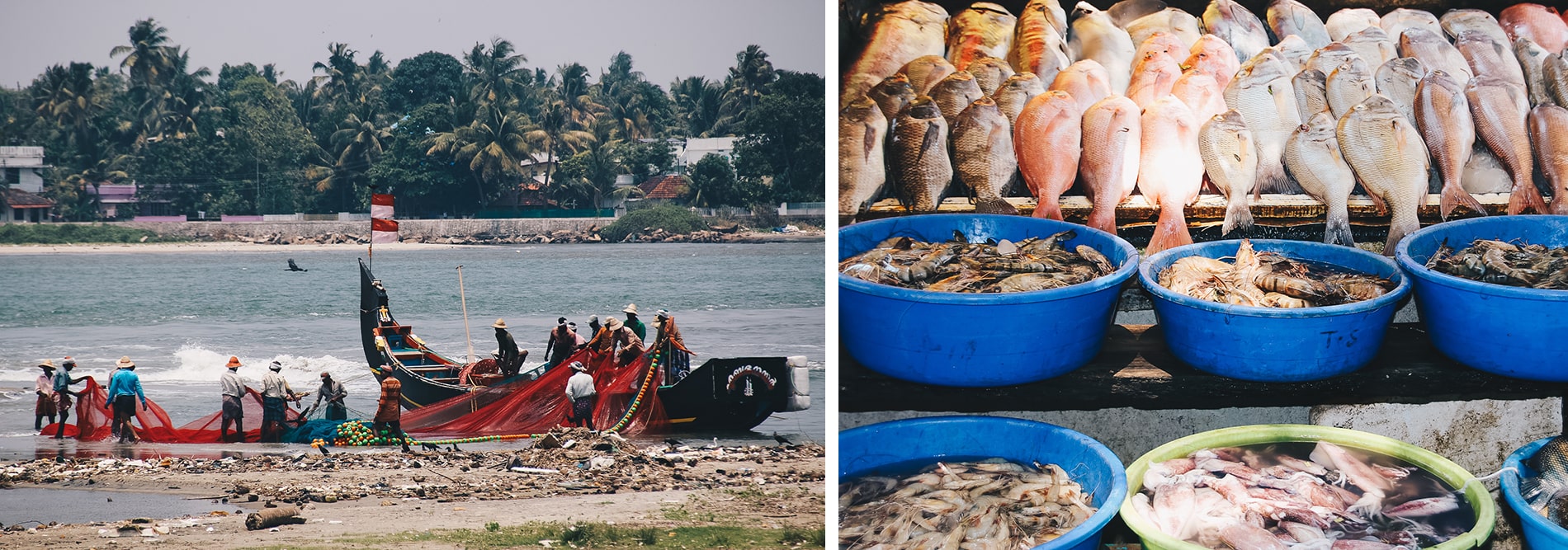 La première chose que nous avons remarqué en arrivant à l’aéroport de Cochin dans le Kerala, c’est cette jupe longue appelée longhi que portaient les hommes et qui tranchait franchement avec les tenues des hommes du Rajasthan. Cochin (Kochi) est une ville animée, rythmée elle aussi par les Rickshaw, ces fameux tuk tuk locaux mais aussi portuaire, qui vit au rythme des expéditions de marchandises et notamment d’épices produits au Kerala. La ville possède également un port de pêche et une zone de pêche appelle « Chinese fishing nets » (grands filets de pêcheurs) qu’il est très sympa de visiter en se baladant tout simplement à pied. Vous y verrez les locaux marchander les poissons, au petit matin et au coucher du soleil. L’occasion de faire travailler ses bras en participant à un relevé de filets avec les pêcheurs. C’est un endroit que vous allez adorer car c’est très photogénique.