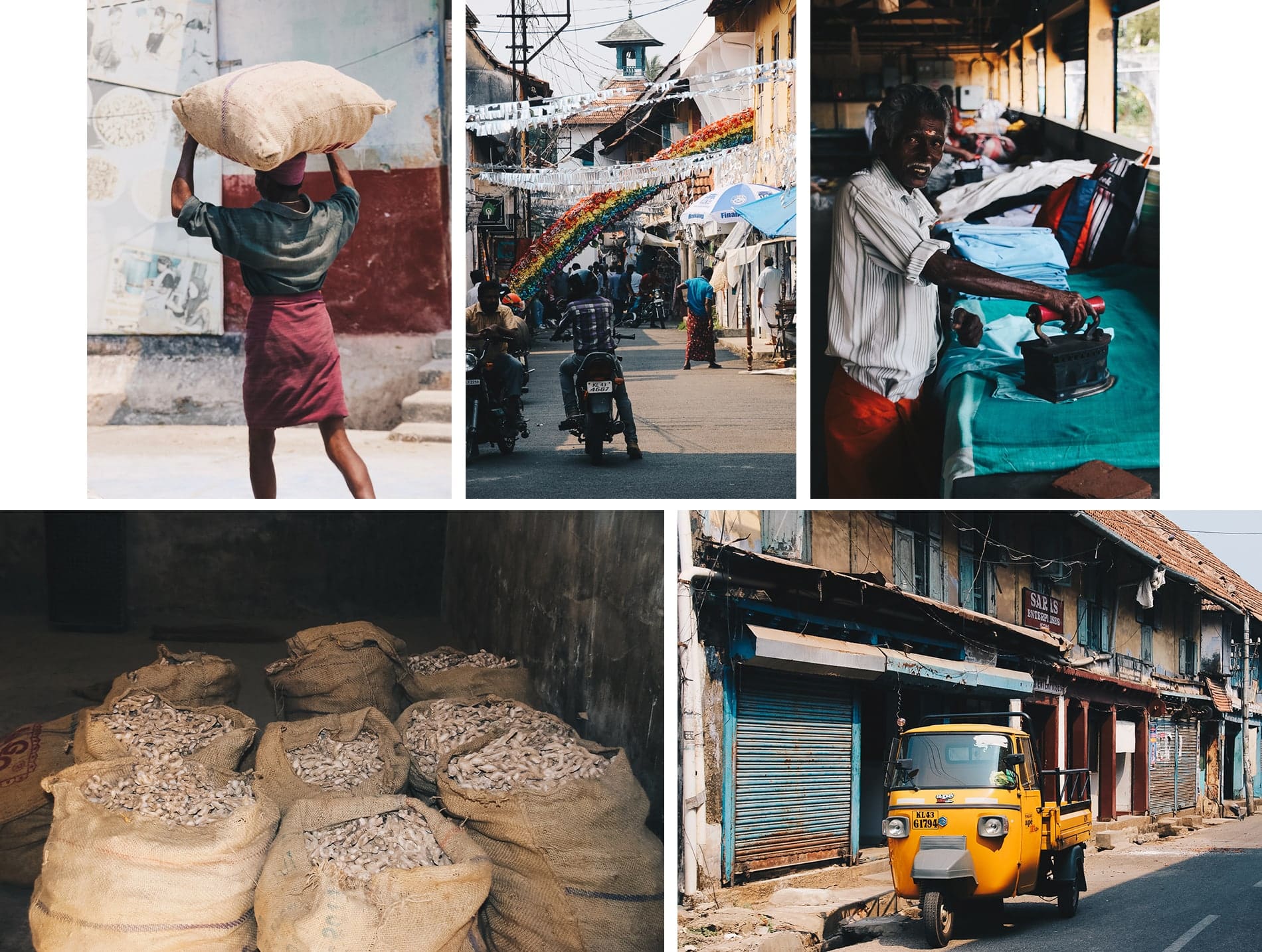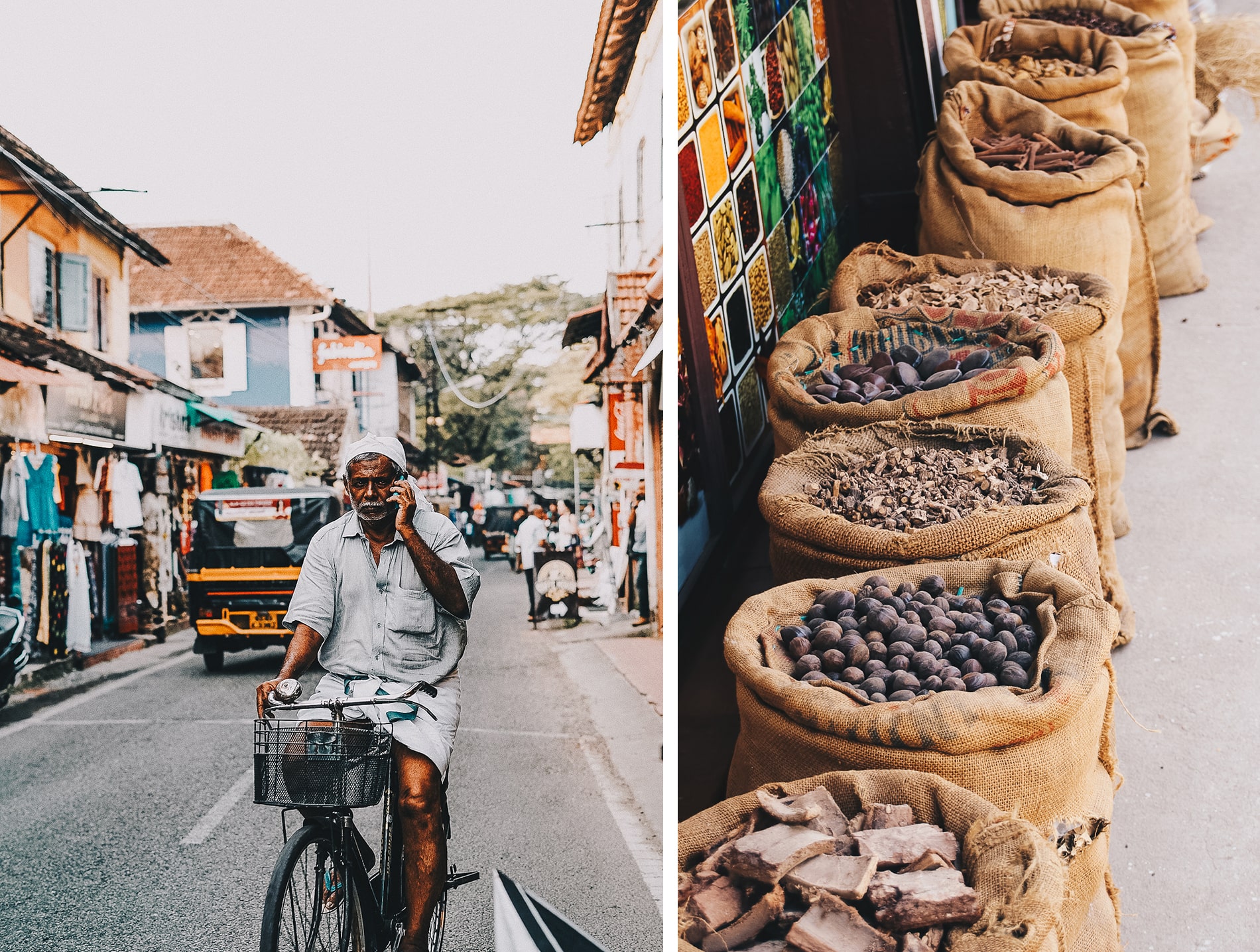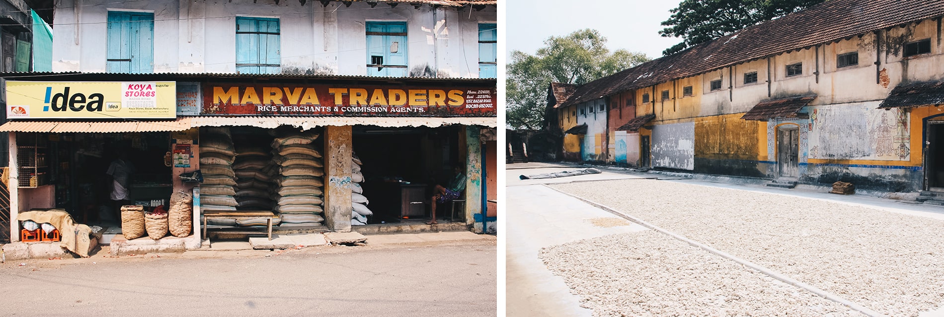 Cochin, c’est aussi des ruelles avec des scènes de vie très chouettes où l’on peut voir des épices comme le gingembre, sécher au soleil avant de partir dans des grands sacs en toile de jute pour l’étranger.