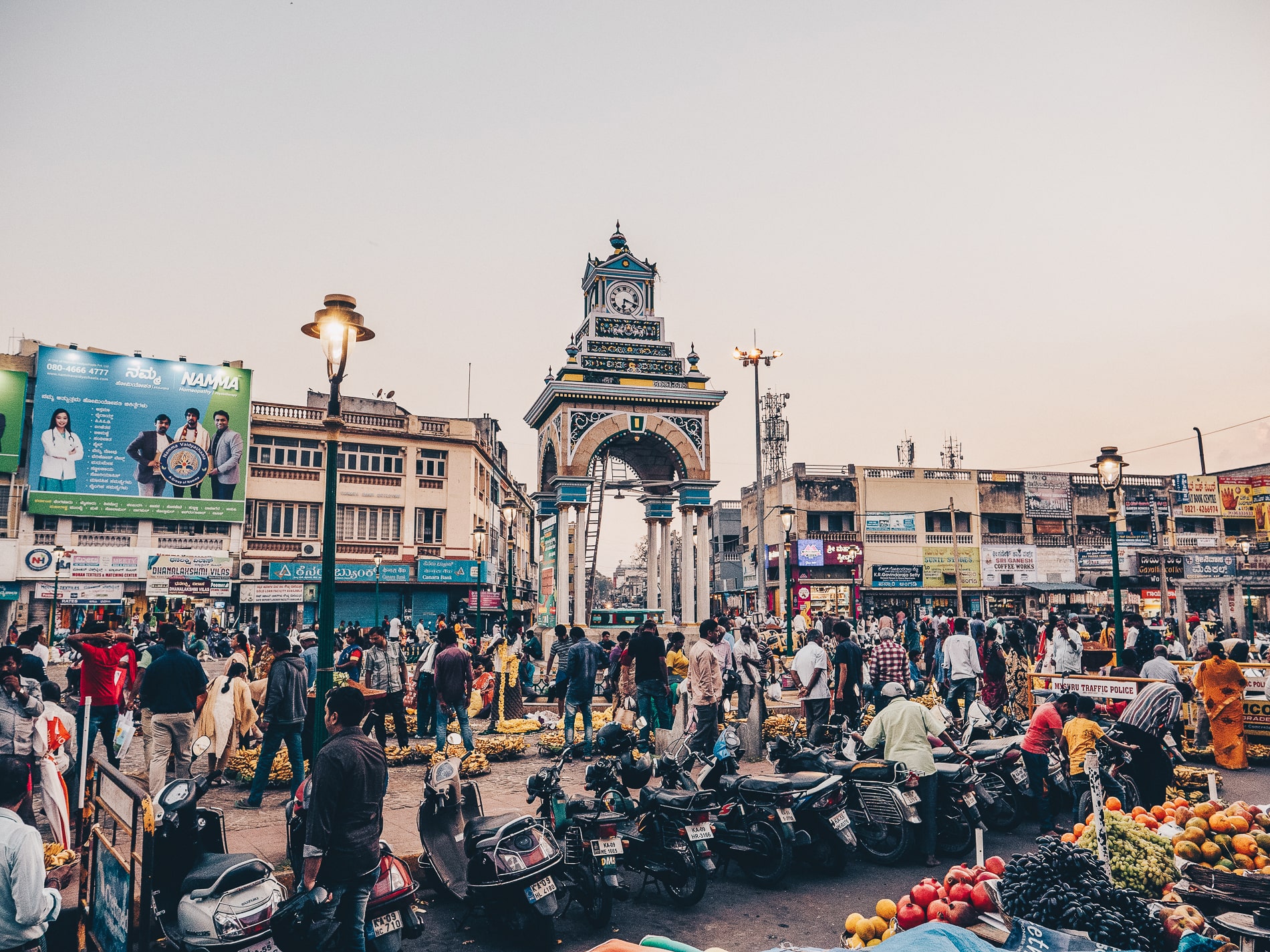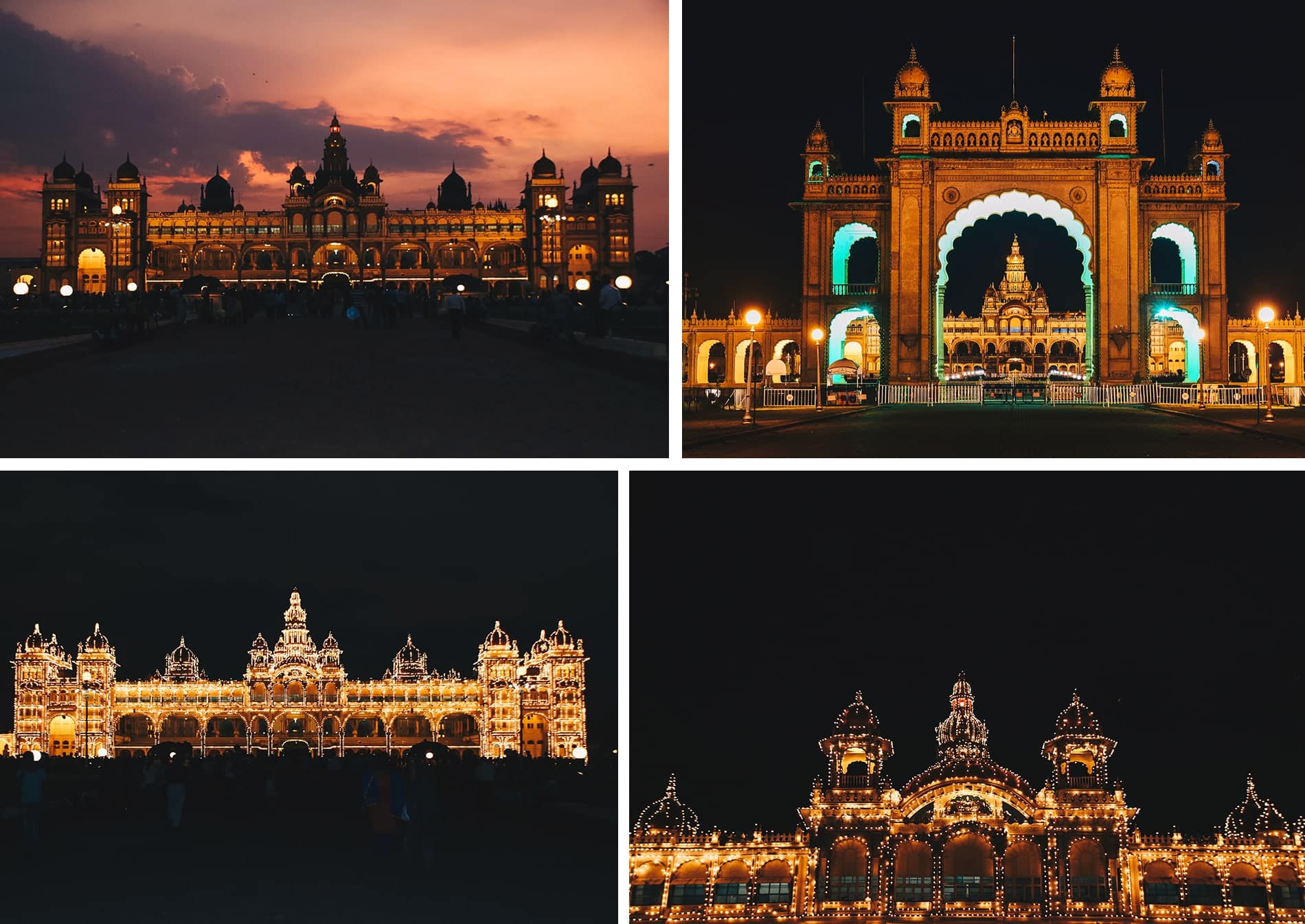 Place ensuite au marché de Mysore, le « Devaraja Market » qui est assez grand. L’ambiance marché est à son comble avec les marchands cherchant à appâter le client en criant depuis leur étalage: couleurs, senteurs, étals de légumes et de fleurs (notamment avec le jasmin qui embaume l’endroit) sont au rendez-vous. Enfin, nous sommes ensuite allés visiter le Palais du Maharaja de Mysore que nous avons trouvé assez vide et trop bondé, mais après avoir passé 21 jours dans le Rajasthan, peut être avions nous eu notre dose de palace! L’intérêt de ce palais reste plutôt la vue extérieure qui est magnifiée les samedis et dimanches de 19h à 20h par un éclairage extérieur illuminant le palais.