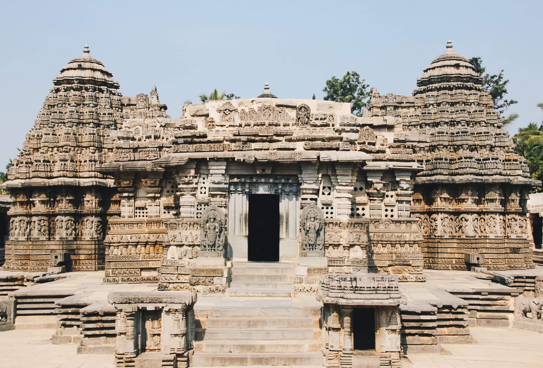 Dernière étape de notre périple à Mysore, la ville la plus au sud du Karnataka. Elle est proche des états du Kerala et du Tamil Nadu au sud. La ville est connue pour sa soie et son bois de santal, sous forme d’encens ou de savon. Au programme, visite du temple de Somnathpur situé à une heure de route environ de Mysore et dédié au Dieu Vishnou. Il est bâti sur une stèle en forme d’étoile et orné de nombreuses sculptures bien travaillées.