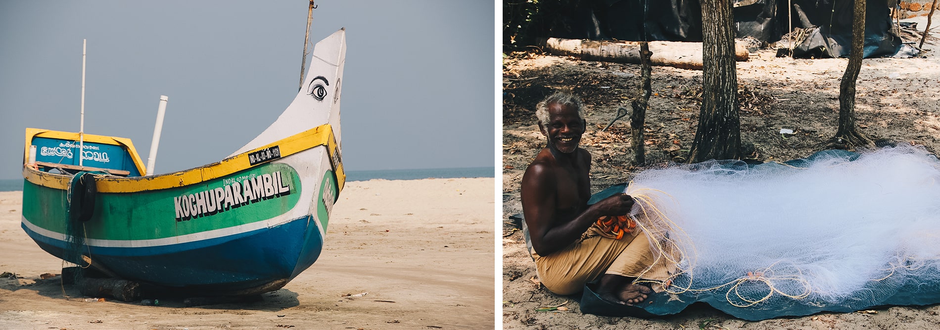 Enfin, sur la route d’Allepey, si les températures avoisinent les 35 degrés comme nous avons eu au mois de mars, prenez le temps de vous arrêter sur la plage de Marari (15km d’Allepey), avec sa longue plage de sable blanc, ses cocotiers penchés, des pêcheurs et leurs petits bateaux, pour une séance de bronzette et de baignade! Et oui, le Kerala, c’est aussi de très belles et longues plages. A titre indicatif, la plage de Kovalam serait l’une des plus célèbres de l’Inde mais très touristique aujourd’hui. J’ai également entendu parlé de Gokarna beach située à l’extrême nord de Karnataka, de Kudlee beach accessible à pied depuis Gokarna, OM beach, Half moon beach et paradise beach. Vous avez vraiment le choix pour prendre un peu de soleil.