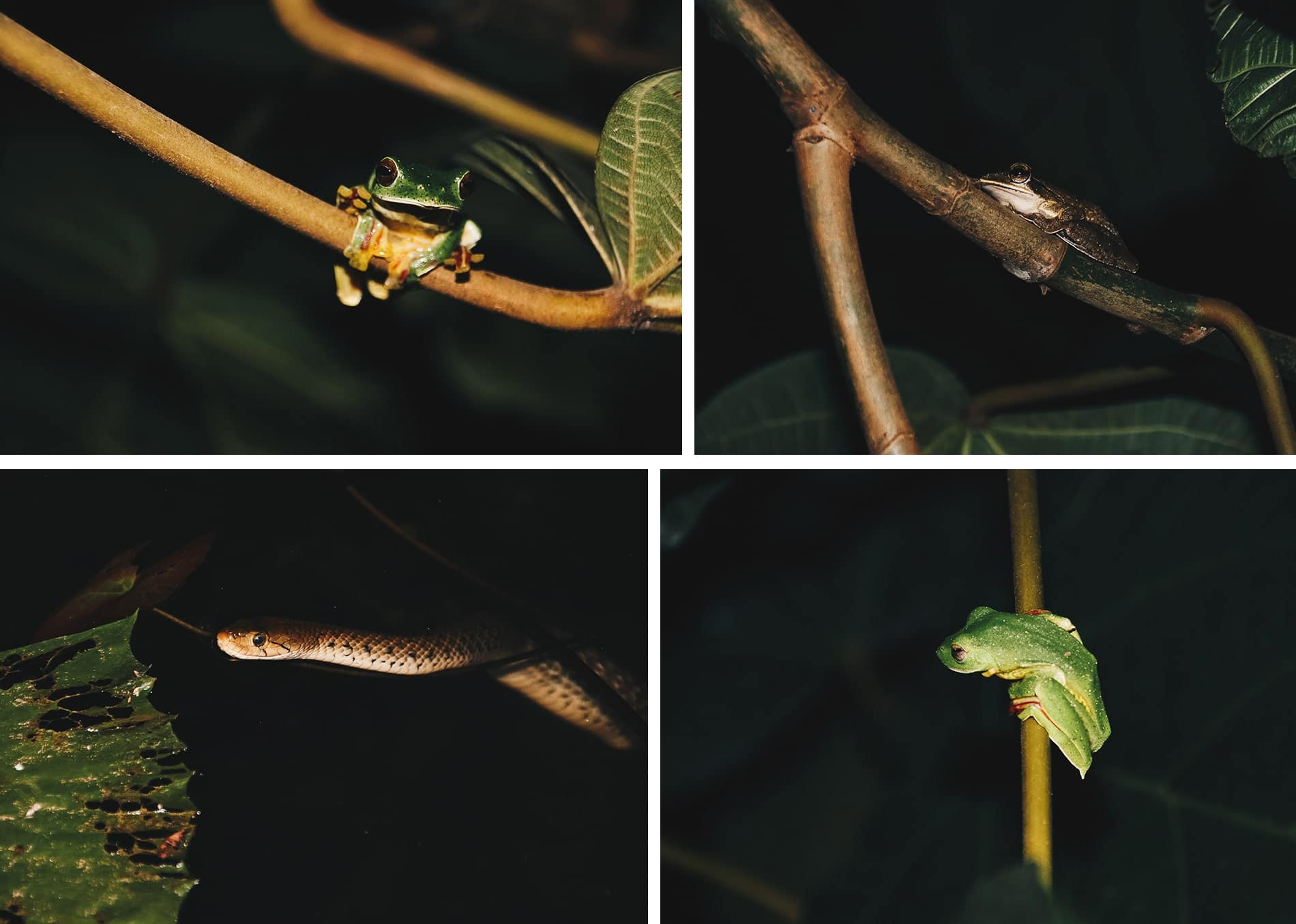 A Wayanad, nous avons logé dans ce lieu très paisible, à la campagne, où il fait bon de s’arrêter quelques jours pour se reposer. Cette homestay est entourée de rizières, d’une végétation luxuriante et d’un immense jardin tropical où poussent fruits de la passion, ananas, bananes… Nous en avons profité ici pour explorer la faune lors d’un safari nocturne: serpents et jolies grenouilles étaient au rendez-vous.