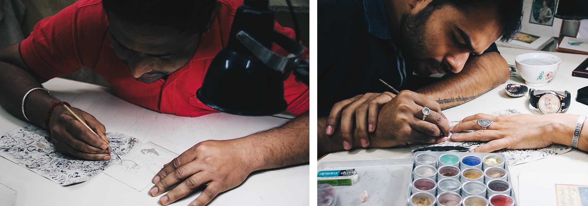 L’Inde possède sur tous ses palais ainsi que dans les Havelis, de magnifiques peintures réalisées par des artistes indiens. On les appelle des miniatures, non pas pour leur tailles, mais pour le détail d’exécution. Les artistes représentent généralement l’histoire des Maharajas ou bien des scènes de la mythologie hindou. Cette tradition de peintures perdure toujours et vous pouvez rapporter en souvenir de très belles pièces, pouvant parfois être personnalisées. À Bikaner, dans l’atelier de Vishnouk, entreprise familiale d’artistes, vous pourrez voir la minutie de leur travail. Cet art est un véritable joyaux encore vivant. Vous pouvez également commander des pièces spécifique en fonction de vos envies. Un excellent souvenir de votre voyage qui restera gravé à vie.