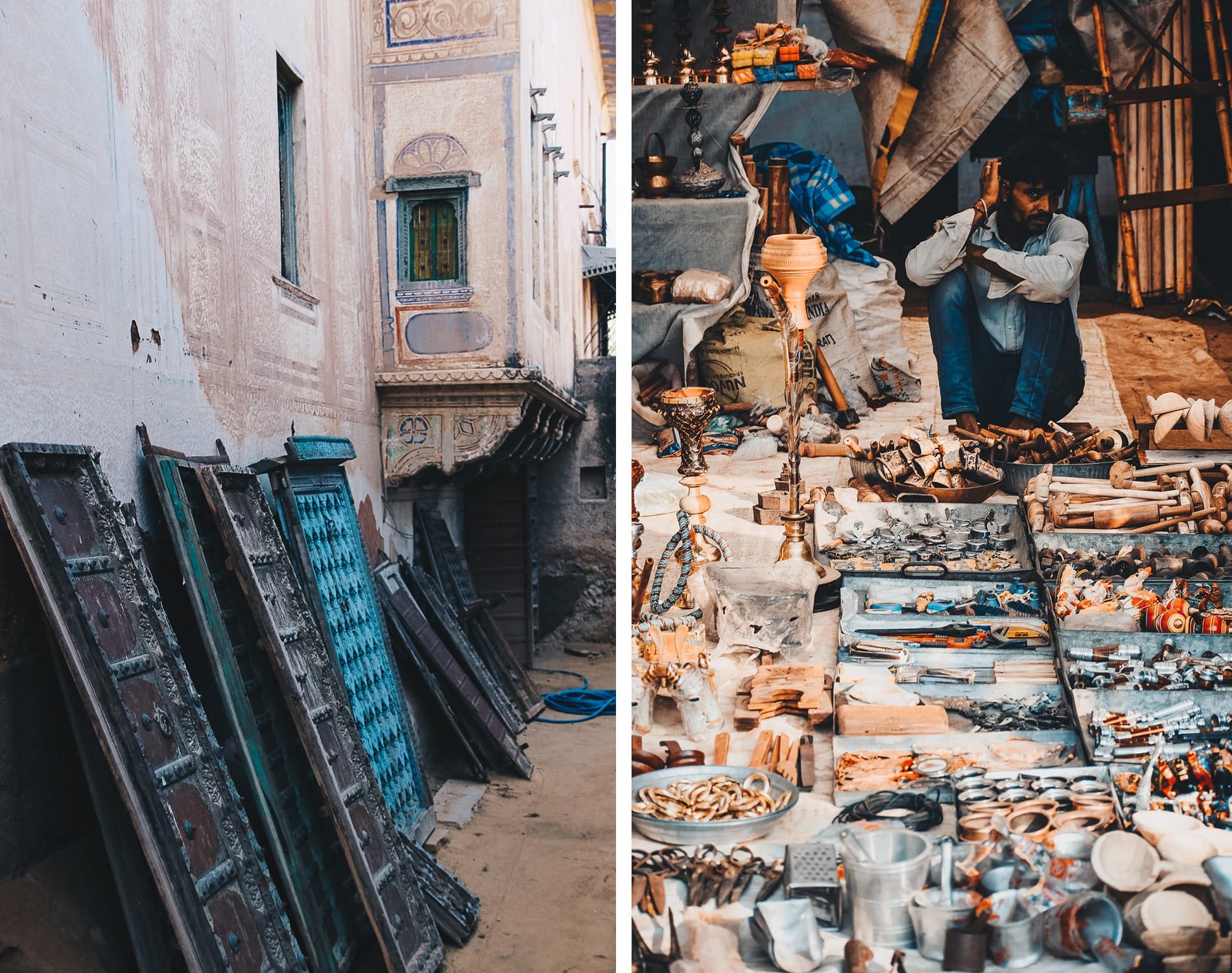 Si vous aussi, vous êtes comme nous des amoureux de la récupération, du chinage pour parfaire votre décoration, vous trouverez également bon nombres de produits en Inde. Nous avons trouvé à Mandawa, petite ville du nord du Rajasthan mais une véritable caverne d’Ali baba: tables, portes, vieille lampe, chaises, bibelots etc… Bon nombres de pièces uniques que nous avions envie de rapporter en France par conteneur. Au vue de notre tour du monde, impossible, mais nous gardons précieusement l’adresse pour une prochaine fois.
