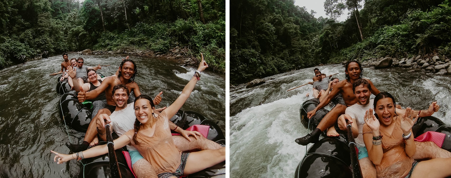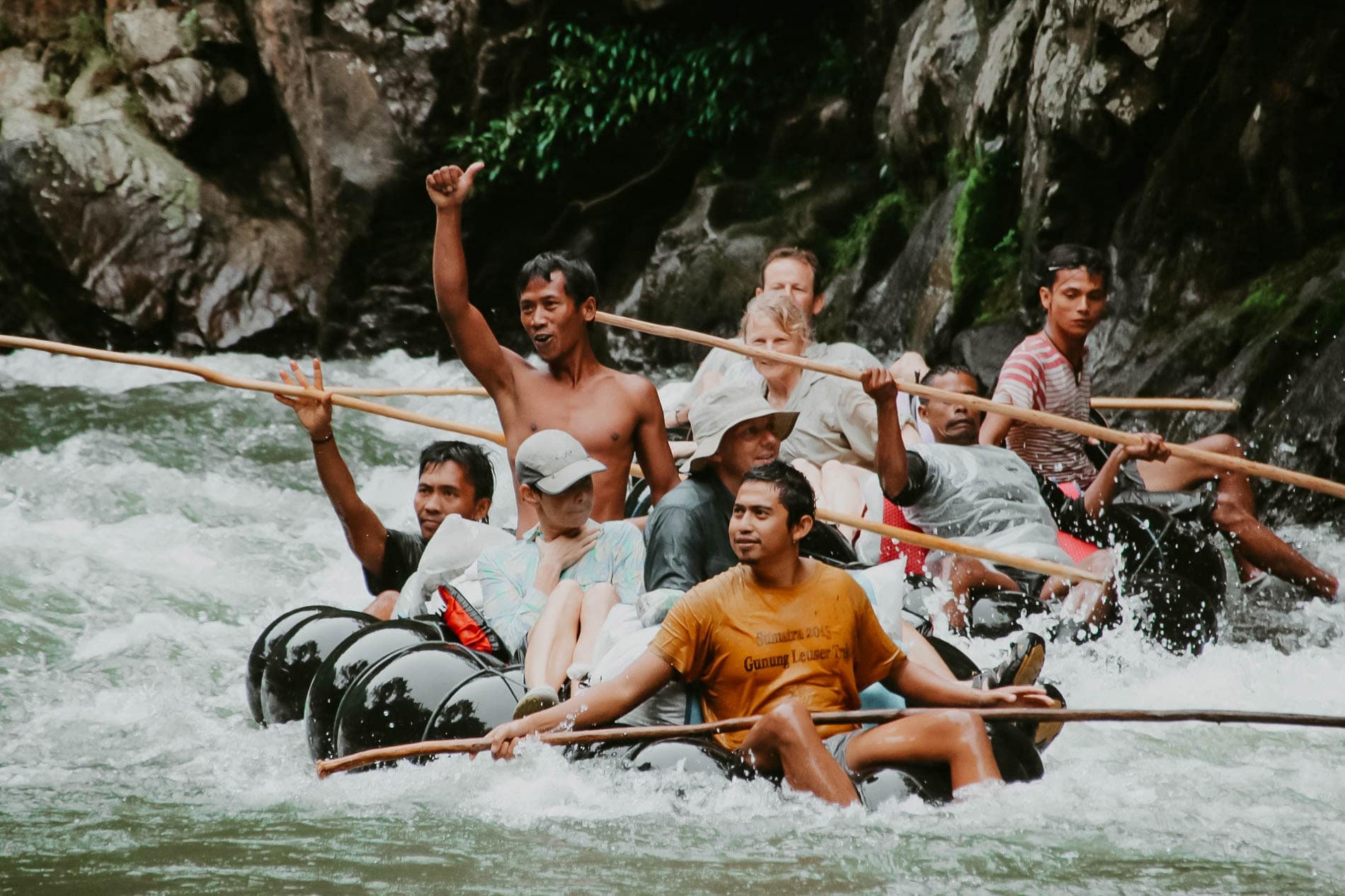 Retour au village ? En trek… ou en rafting ! Nous avons choisi la descente de la rivière en grosses bouées reliées entre elles. Pour seulement 10€ de plus, c’est drôle, rafraîchissant, et surtout original ! Rires garantis !
