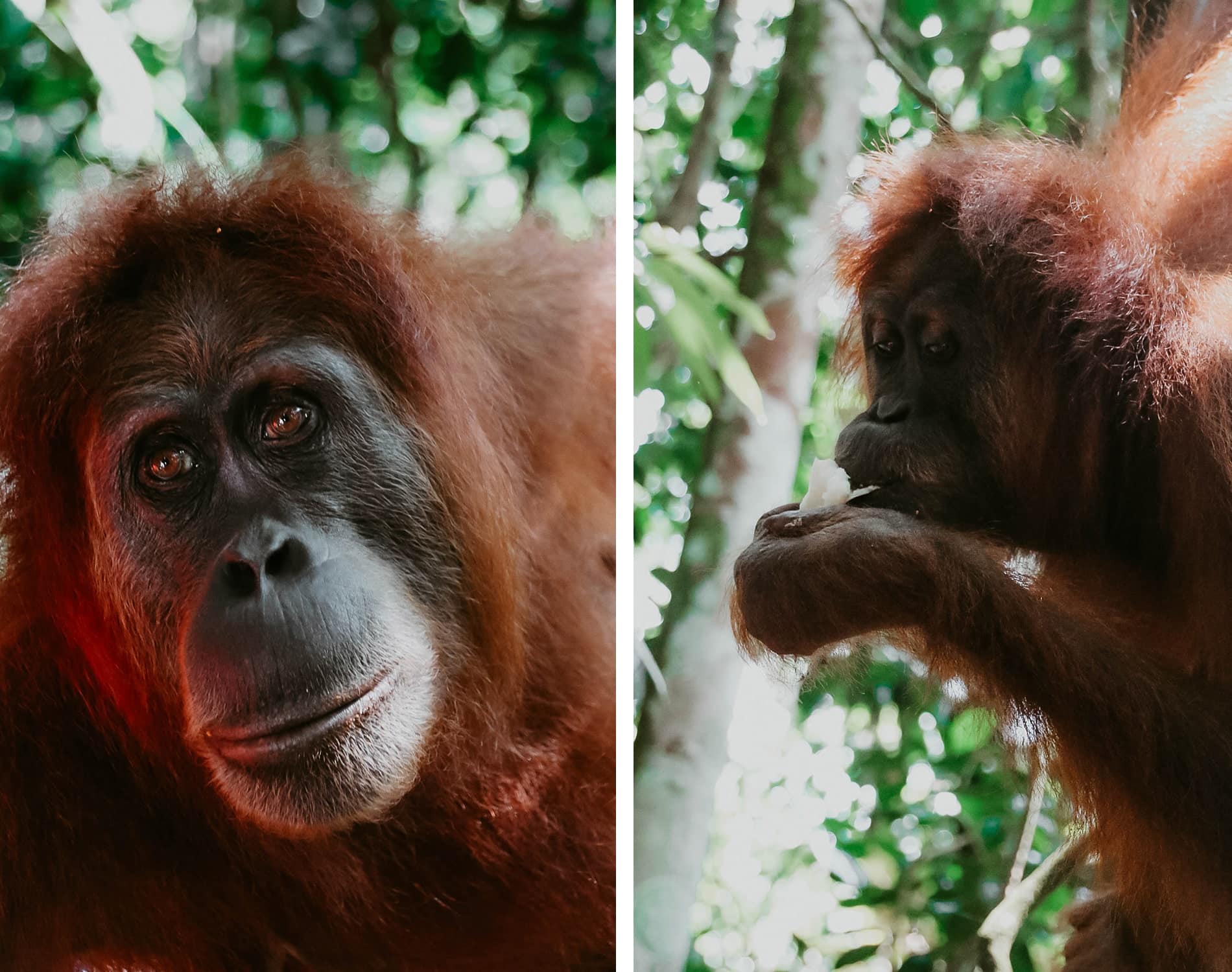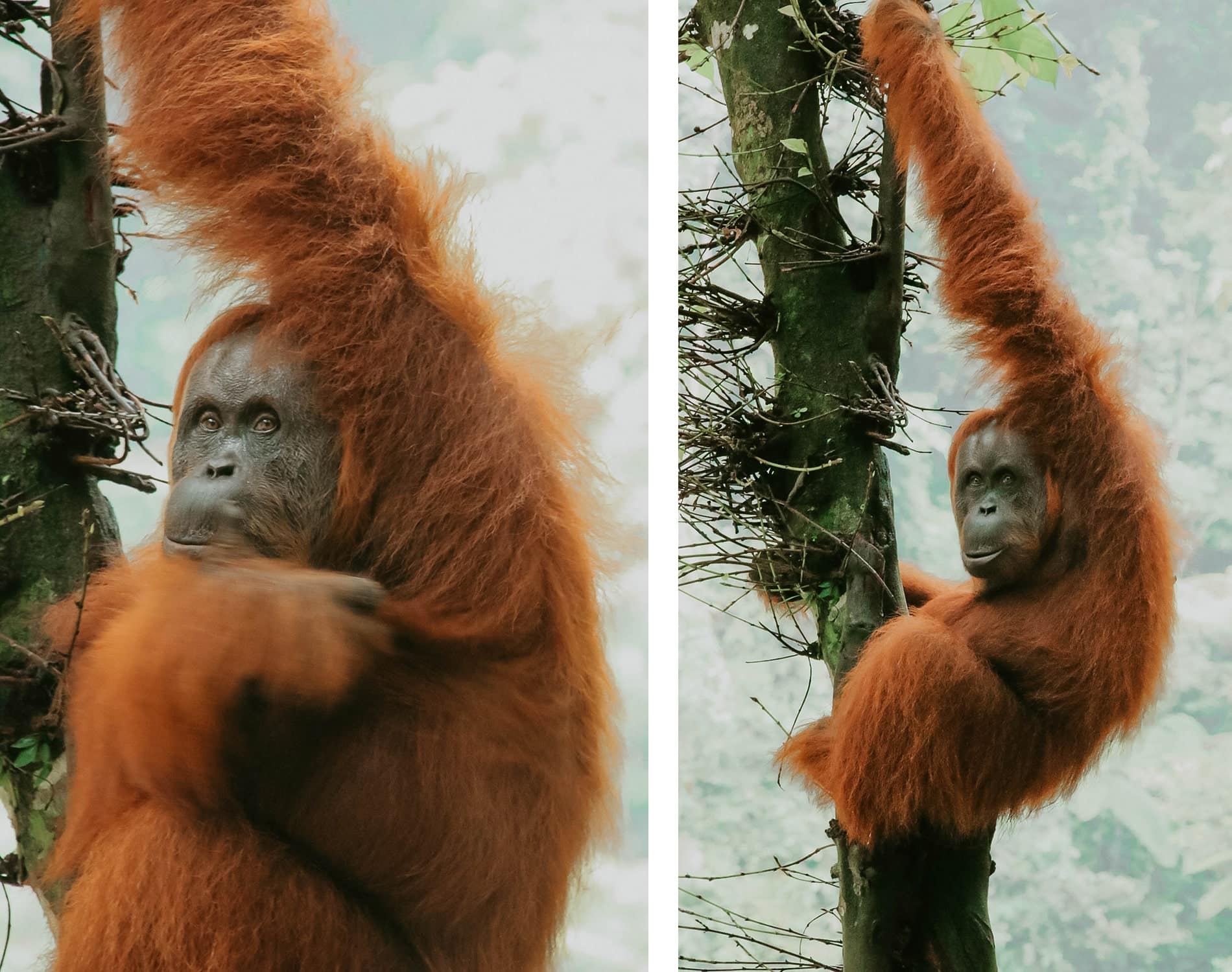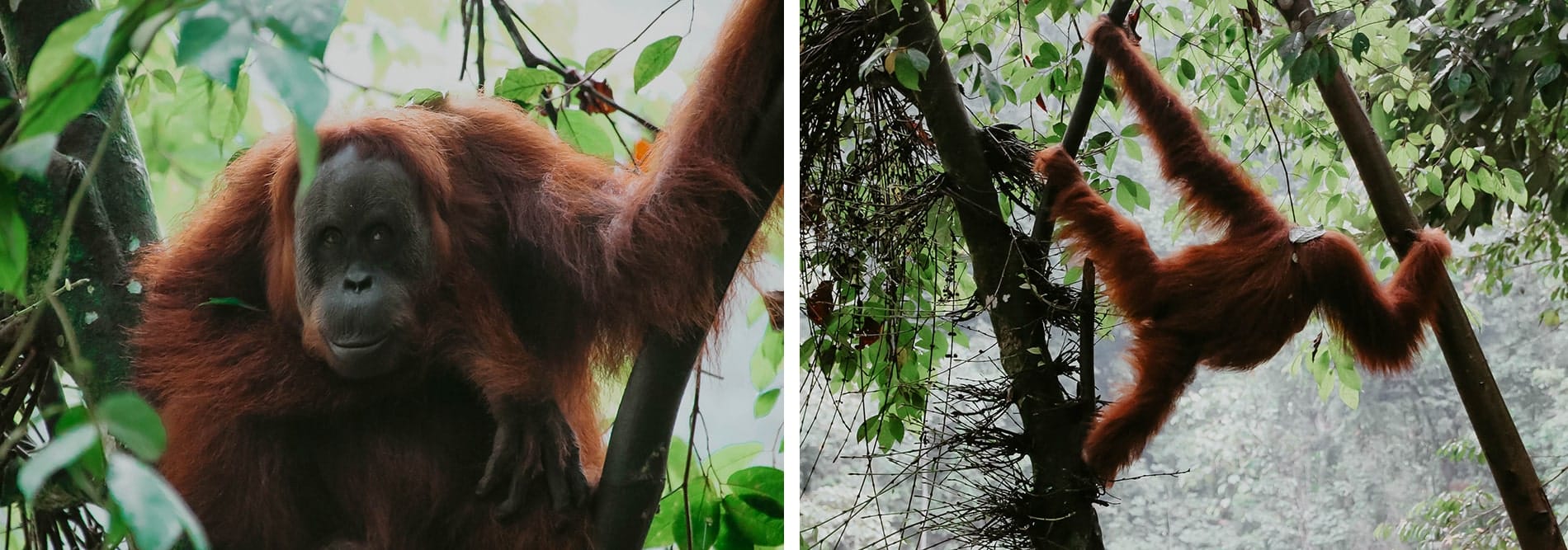 À Bukit Lawang, le centre de réhabilitation œuvre chaque jour pour les réintégrer dans la nature, de les rendre indépendants, et de les réhabituer peu à peu à la vie sauvage. Certains d’entre eux reviennent ponctuellement sur des plateformes de nourrissage, car ils rencontrent des difficultés pour se nourrir mais ils sont de moins en moins nombreux à le faire : un bon signe de réadaptation à la vie sauvage. C’est pourquoi il est important de visiter ces sanctuaires et ces refuges à primates afin de préserver l’espèce.