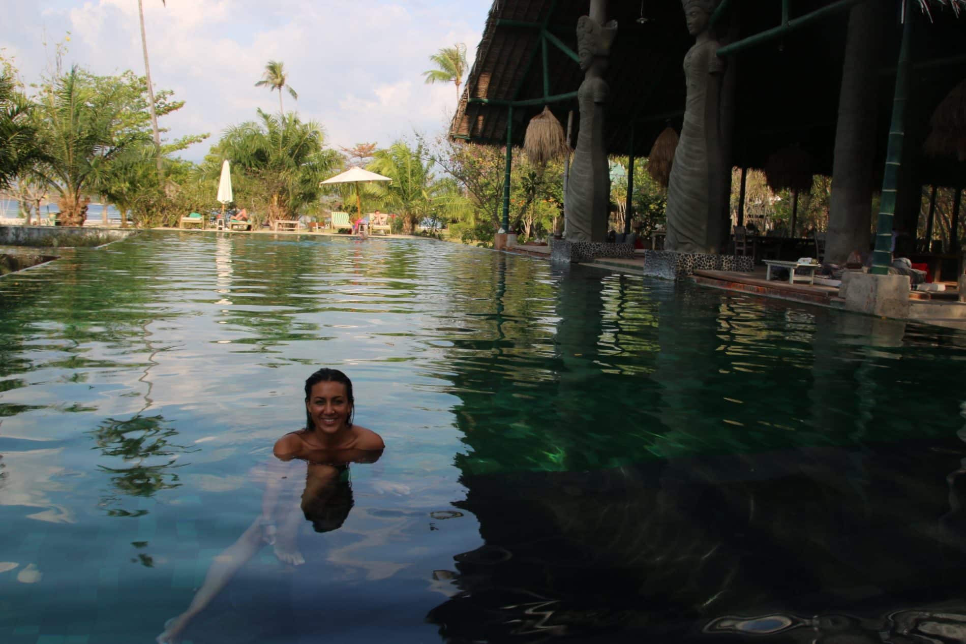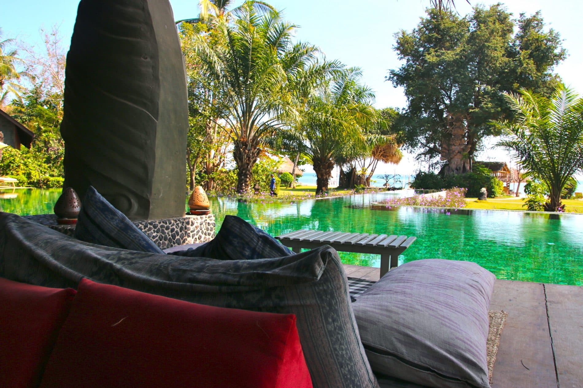 Situé à 25 mn de l’embarcadère Gili Air ->Bangsal, l’hôtel étendu sur 6 hectares, dispose de 37 chambres villas dont une présidentielle à 900 dollars, de 2 piscines, 2 restaurants, un spa et d’un temple privé qui se loue pour une occasion particulière ou un diner romantique! Oui oui vous ne rêvez pas!