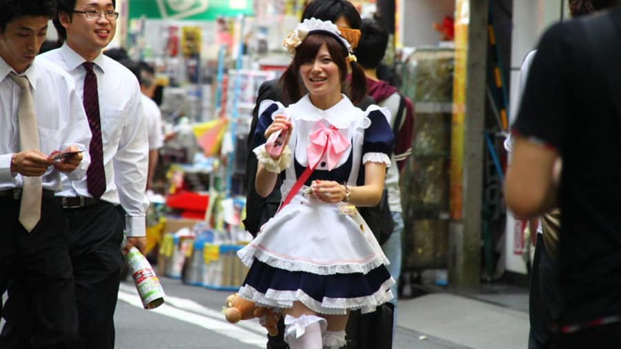Ici, vous plongerez directement dans l’univers Kawaï. Le concept est totalement décalé! On vient boire un verre dans un environnement très enfantin et servi par des soubrettes issues de l’univers manga. Les soubrettes, ce sont des jeunes filles, qui portent un uniforme de domestique et qui vous servent à boire et à manger tout en vous distrayant (chansons, spectacles, animations…)L’entrée a un coût différent en journée (500¥/p) ou en soirée (800¥/p) et une fois à l’intérieur, vous devrez consommer obligatoirement soit une boisson accompagnée de bonbons soit déguster des glaces en forme de chats, d’oursons, de tortues. Des petits jouets vous sont également proposés pour vous imprégner de l’atmosphère, nous, nous avions des oreilles de bunny. Au moment du service, une grande partie de fou rire vous attend avec le petit cérémonial l’accompagnant. On ne vous en dit pas plus, et on vous laisse le découvrir par vous-même. Attention photos interdites à l’intérieur et interdiction de les toucher. Dernière précision qui a son importance, ce bar n’a absolument aucun caractère sexuel bien au contraire. D’ailleurs, nous avons été très étonnés de trouver un public assez varié: jeunes adultes de 18 ans mais aussi des couples, des groupes d’amies, des familles et même des hommes d’affaires venus avec leur mallette! Soyez donc respectueux avec elles. Vous trouverez ces bars un peu partout dans le quartier d’Akihabara à Tokyo. Nous, nous avons testé celui de Calaugh.