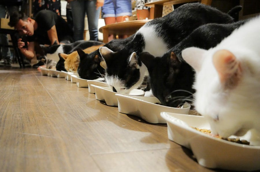 Autre curiosité importée en France, le Neko Bar appelé aussi Bar à chat. Ces lieux de détente et de calme sont prisés des Tokyoites! Stressés par leur quotidien, ils n’ont pas forcément la place de posséder un chat en appartement mais les japonais les adorent, d’où le succès de ces bars. Le concept est sympa, vous buvez votre café entre 30 minutes et 1h, tout en caressant des chats, dans une ambiance très zen et décontractée. Vous trouverez des gens lisant tranquillement un livre sur des chaises ou dans des canapés confortables mais aussi des personnes travaillant sur leurs ordinateurs ou encore des groupes d’amis venus discuter calmement. Les chats circulent entre vos jambes, ils s’amusent avec leurs accessoires ou se reposent sur leurs arbres à chats. Vous devrez vous déchausser à l’entrée, vous laver les mains et vous acquitter d’une consommation de 800¥/p minimum (pour celui que nous avons essayé à Tokyo). Passée 1 heure, vous devez payer ¥250 toutes les 15 minutes. Pendant ce temps là, les chats font leur vie et vous pourrez vous déplacer calmement pour aller les regarder et les caresser. Vous trouverez ce type de bars à Tokyo mais également dans toutes les grandes villes du pays. A Shibuya, le Hapineko est réputé alors pensez à réserver un créneau horaire. Pourquoi on a aimé ? car ce concept décalé contraste avec la vie à cent à l’heure des japonais!