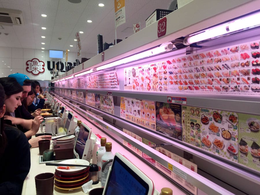 Sortons maintenant de l’univers des cafés et tournons-nous vers ce que nous français adorons à savoir manger! Au Japon, les sushis-Bar sont absolument à tester. Vous en trouverez à tous les prix bien évidemment mais en matière de rapport qualité-prix, nous avons trouvé une adresse absolument géniale, une chaîne de restaurant que nous avons testé à Tokyo, dans le quartier de Shibuya et qui s’appelle UEBOI. Installez-vous sur un des comptoirs et passez commande en anglais sur les tablettes électroniques juste en face de vous. Vous serez servis à la vitesse de l’éclair! Vous avez un large choix de maki et Nigiri (au thon, calamar, poulpe, saumon, crevettes etc…) pour seulement ¥100 les 2 pièces. Une fois commandé, un petit tapis roulant vous apportera juste devant vous dans une petite assiette, votre repas. Il suffit de le récupérer et de renvoyer le plateau à l’aide d’un bouton! C’est rapide, pas cher, bon et efficace! Selon les enseignes, vous paierez soit au nombre d’assiettes que vous aurez empilé soit en fonction de vos commandes successives. Croyez-nous, vous allez vous régaler. À ne donc surtout pas manquez, sans quoi vous passeriez à côté de quelque chose d’unique en son genre. A quand ce concept en France ?