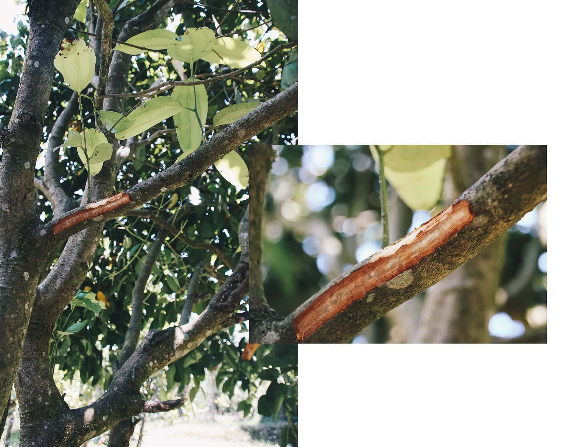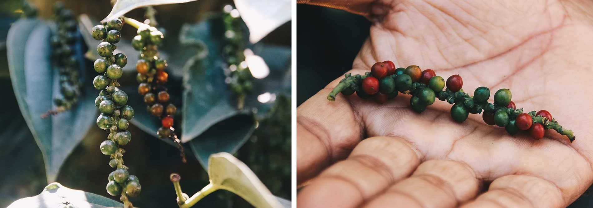 Le poivre est appelé le roi des épices et pousse comme sur une liane adossée à un autre arbre. On pourrait le comparer à du lierre.