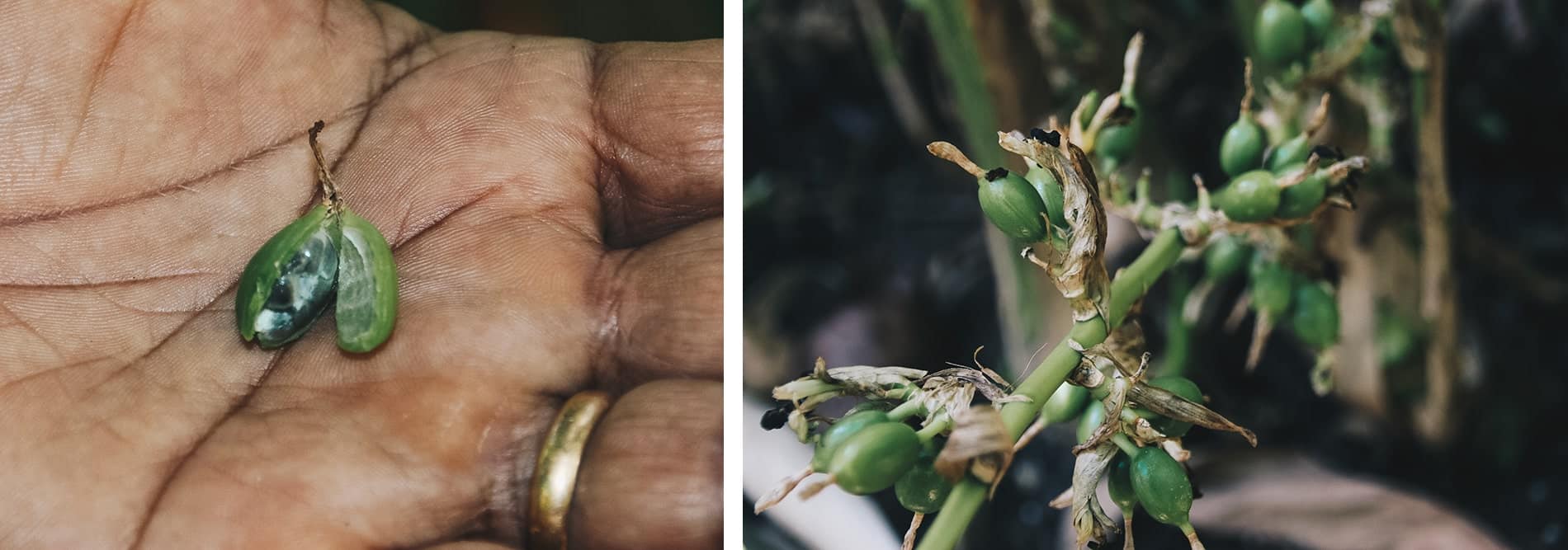 Pour la trouver, ne cherchez pas en hauteur, mais aux pieds de l’arbre. La cardamome est une petite cosse verte remplie de graines et se récolte avec minutie et précaution toutes les 4 semaines environ. On lui présente les vertus suivantes: