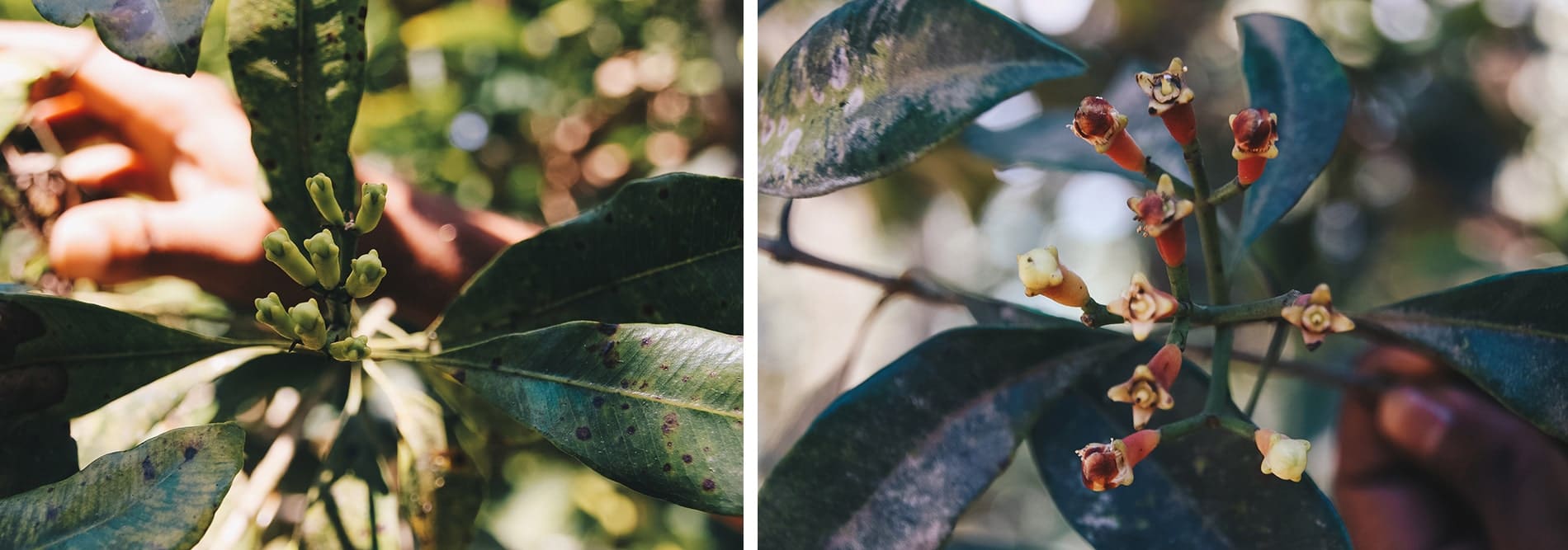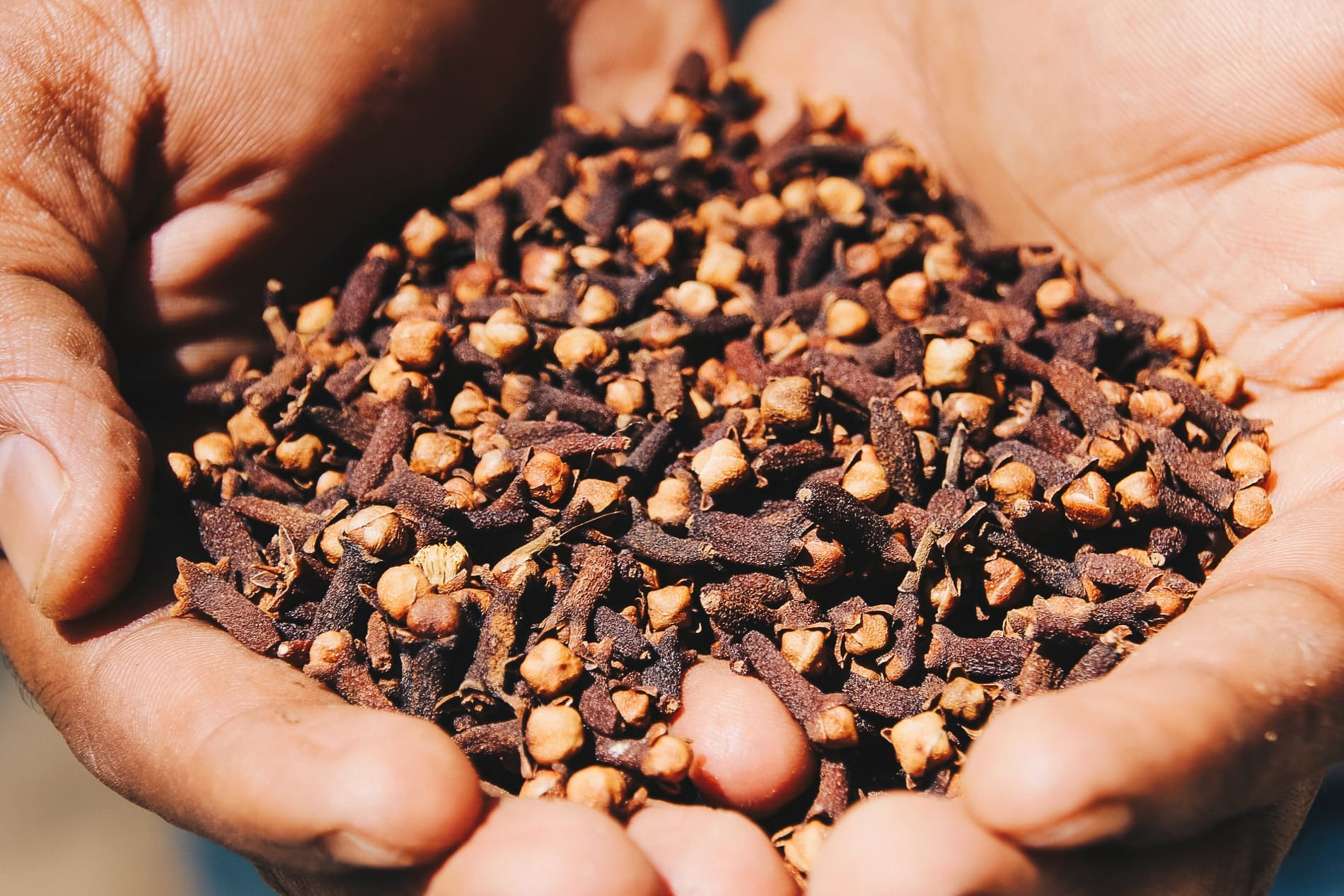 Le clou de girofle nous vient simplement d’un arbre. Le clou de girofle est une épice indispensable dans la cuisine indienne non seulement pour les arômes qu’il diffuse dans un plat mais aussi pour ses qualités médicinales. Ces boutons ont des propriétés antiseptiques et anesthésiques. On le met notamment dans la bouche pour calmer les douleurs des dents et aussi pour calmer la toux.