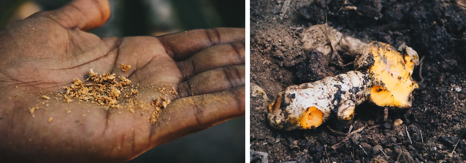 Le Curcuma est une racine. Il pousse donc en terre et ressemble d’aspect extérieur au gingembre. On lui présente différentes vertus: d’être aphrodisiaque, de combattre l’acné en se badigeonnant le visage avec, de se protéger du soleil et de nourrir la peau. Une fois récoltée, la racine est séchée puis broyée pour en faire la poudre que nous consommons.