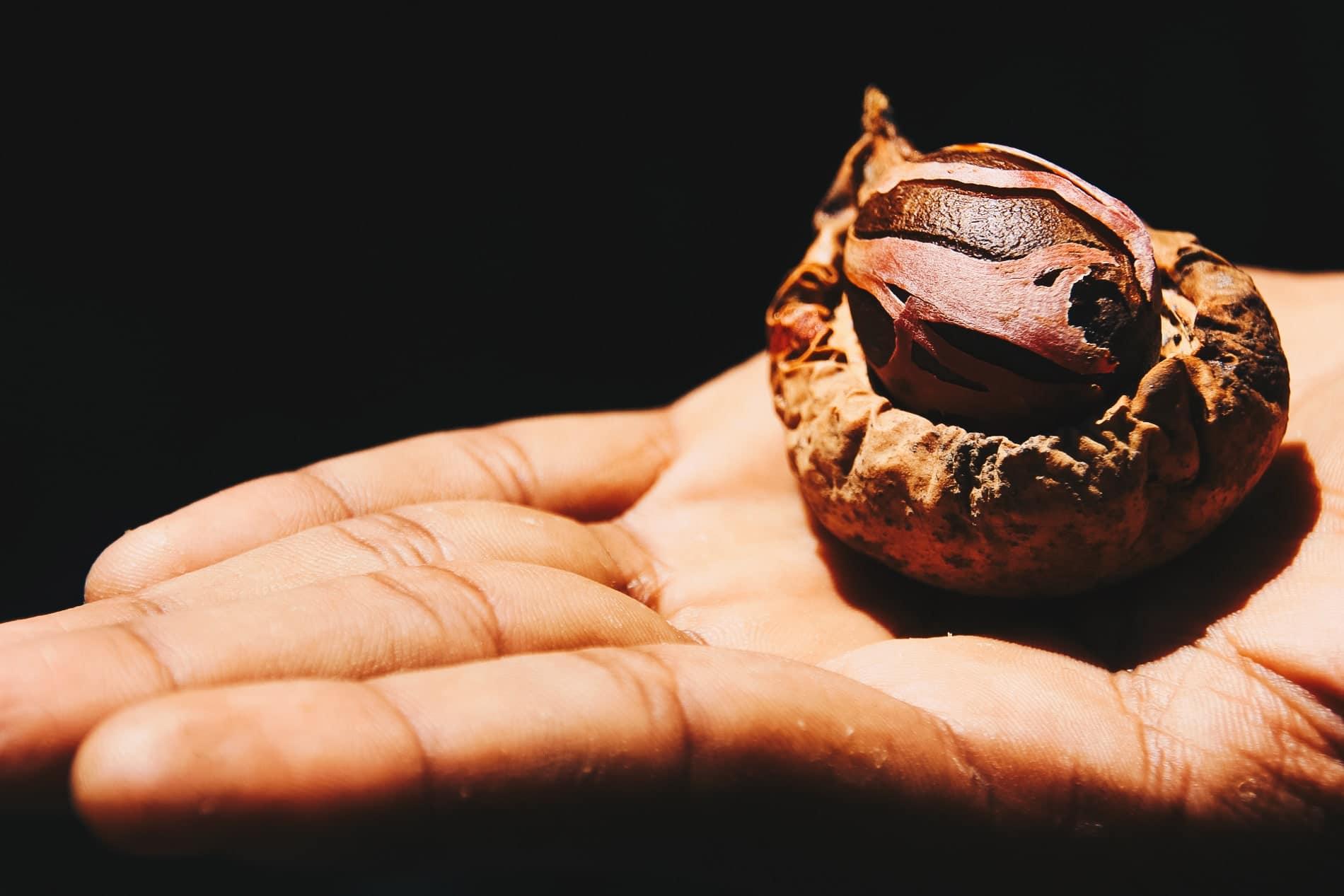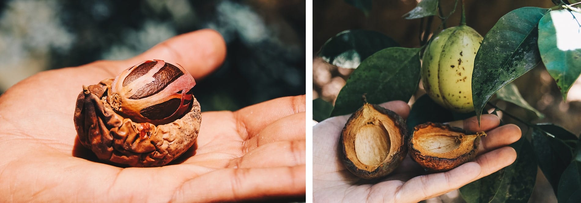 Elle nous vient d’un arbre, le muscadier, et la noix que nous consommons râpée se situe à l’intérieur d’une cosse qui ressemble à une noix. Elle est entourée d’une fleur, utilisée dans la cuisine indienne en marinade pour donner du goût au poulet. La muscade a la vertu de favoriser une bonne digestion et est récoltée la dernière semaine de Mars en Inde.