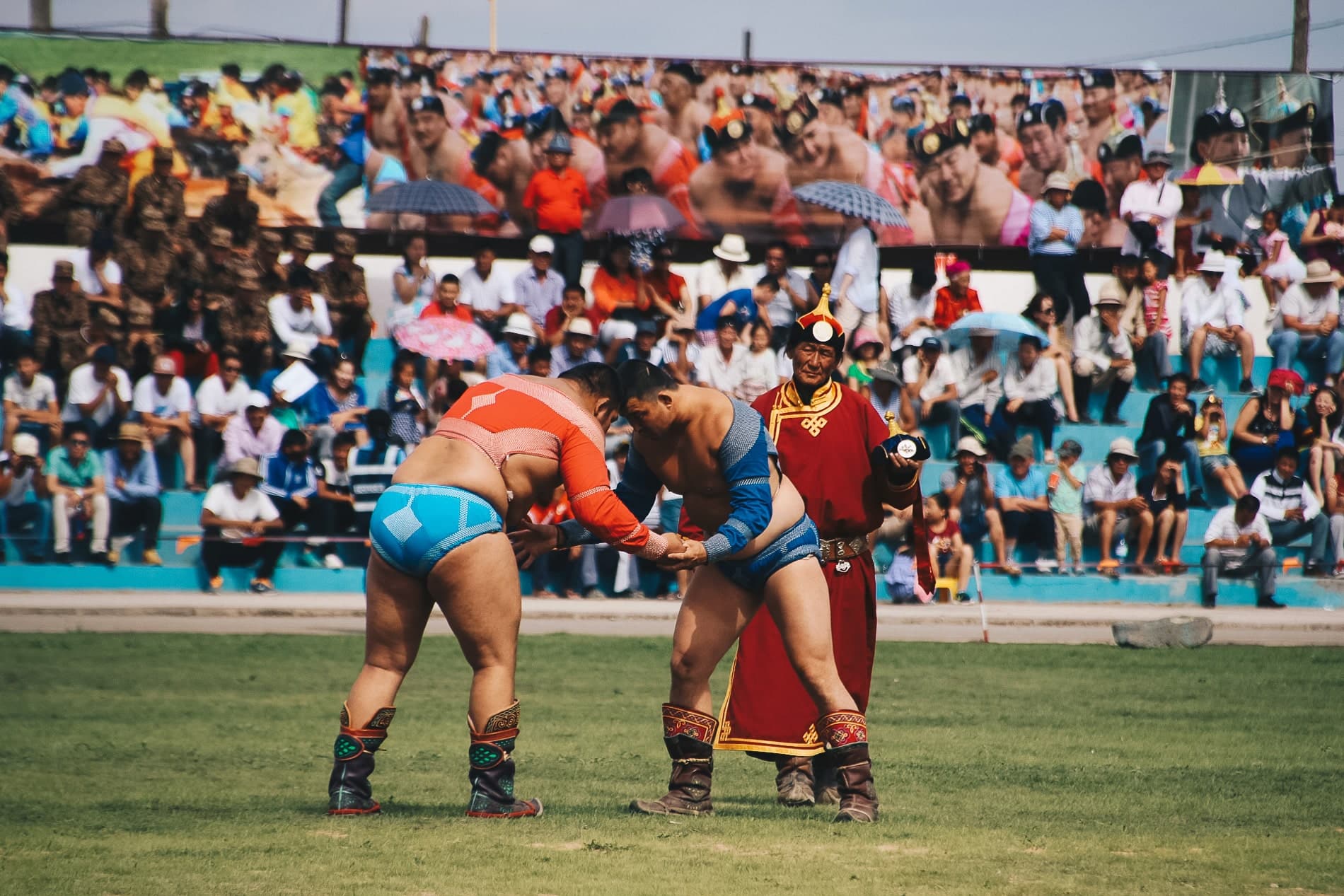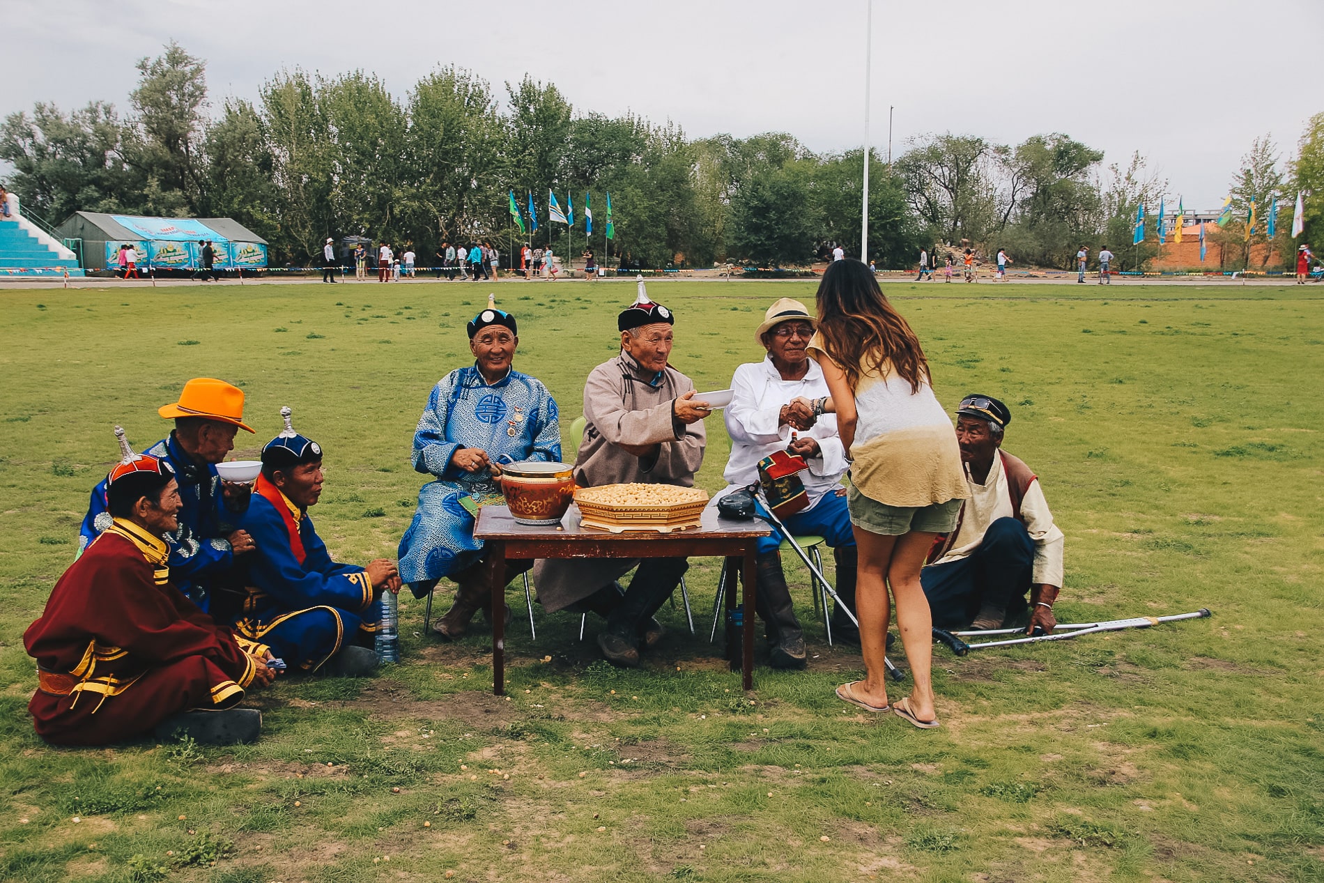 Le NAADAM qui signifie jeux en Mongole est la principale fête traditionnelle mongole du mois de juillet, qui est chère aux locaux. Sur quelques jours sont organisés des combats acharnés de courses de chevaux, concours d’archers, luttes. C’est l’occasion de s’amuser, de se retrouver en famille et amis, de boire de l’Airag (lait de jument fermenté) et de goûter au khuushuur (chaussons de mouton) et de revêtir son plus beau costume traditionnelle. Un évènement qui se célèbre autour des grandes villes et à ne pas manquer si vous êtes dans le pays. On a même eu le droit à une photo avec le vainqueur du concours de lutte!