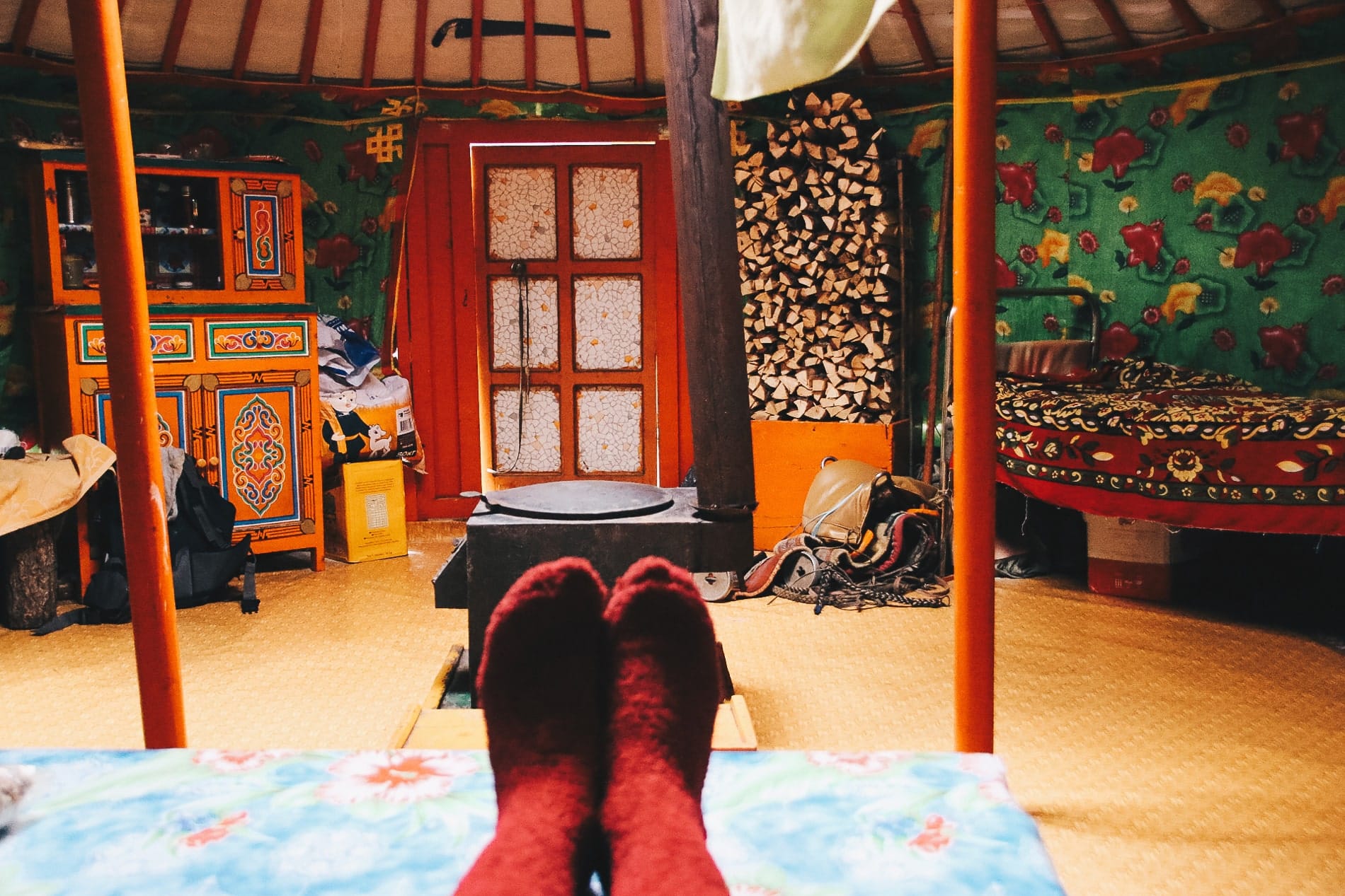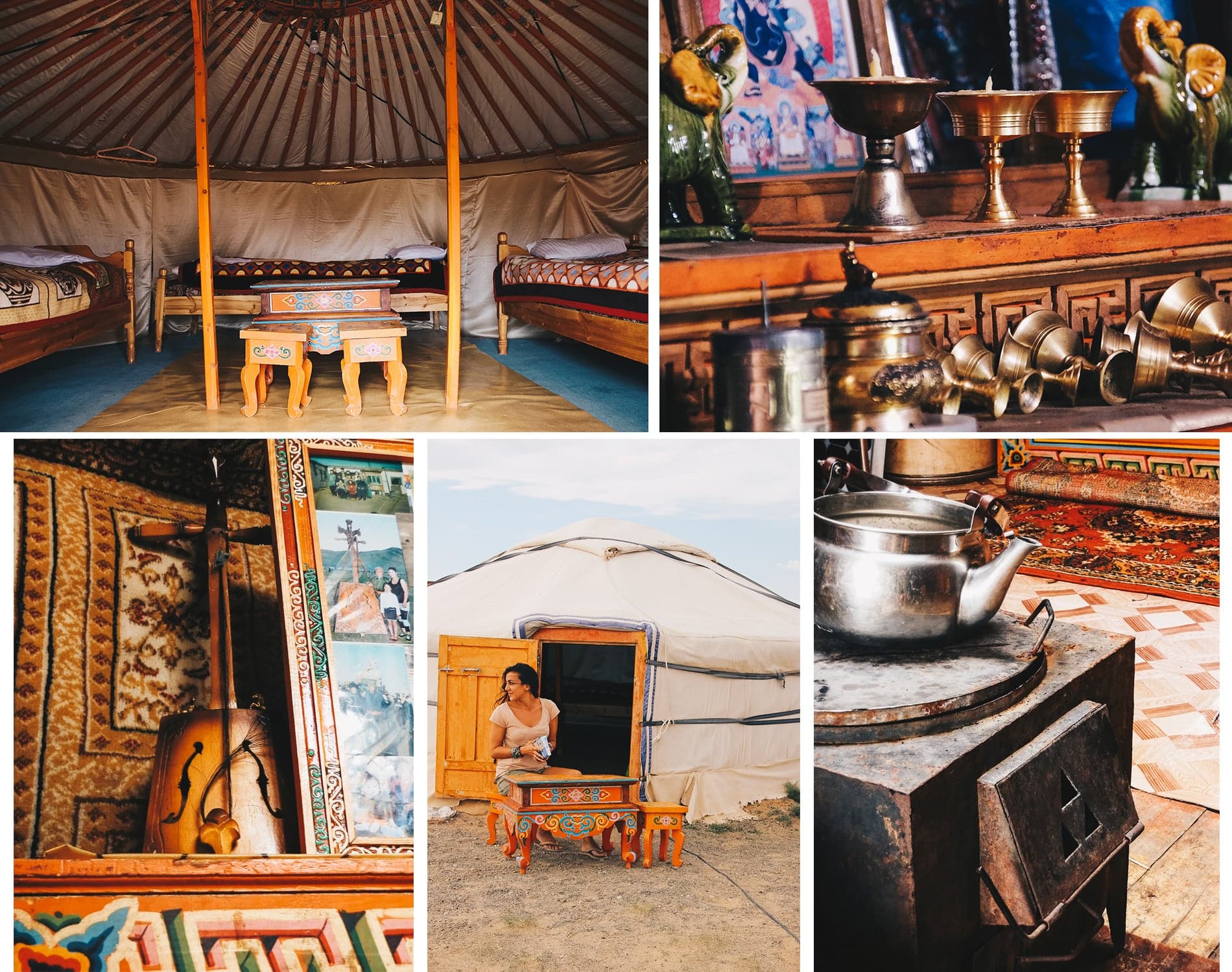 C’est une expérience marquante! Les tentes traditionnelles sont aujourd’hui en feutre mais une fois la porte franchie, l’intérieur est différent! Elles peuvent être colorées de façon gypsy et meublées par des quantités de meubles (lits, armoires, tables basse, tabourets…) et d’équipements modernes (TV, paraboles en extérieur). C’est un leu incontournable où se retrouvent les locaux. Tout le monde est le bienvenu et vous n’avez pas besoin de frapper à la porte.