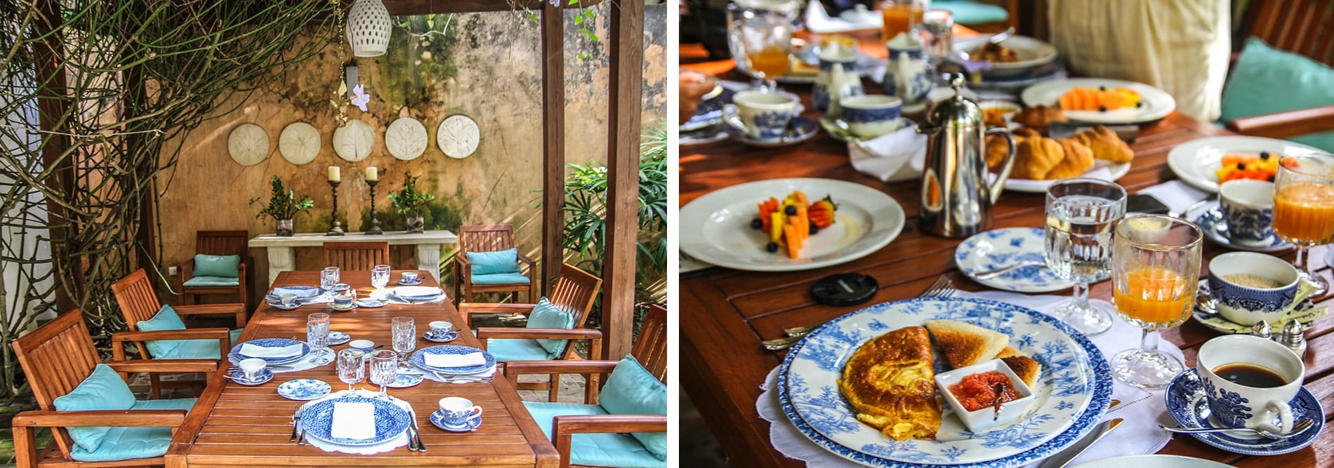 Atterris tard à Saint-Domingue, nous avons testé le soir de notre arrivée, dans le patio extérieur de la Casa del Arbol, un dîner léger mais très bon, sous forme de tapas: croquettes au fromage, brochettes de viandes, mini burgers, crevettes marinées accompagnés d’un bon verre de vin. Le petit déjeuner quant à lui était à la carte et proposait du choix allant du petit déjeuner continental, healthy en passant par le petit déjeuner local et dominicain. Il y en avait pour tous les goûts. J’ai beaucoup aimé le lieu où nous l’avons pris dans la Casas de los Mapas, une sorte de pergola fleurie juste à côté de la piscine proposant un petit déjeuner copieux et savoureux servi dans une jolie vaisselle aux tons bleutés. On se sentait déjà en vacances dans ce lieu paisible.