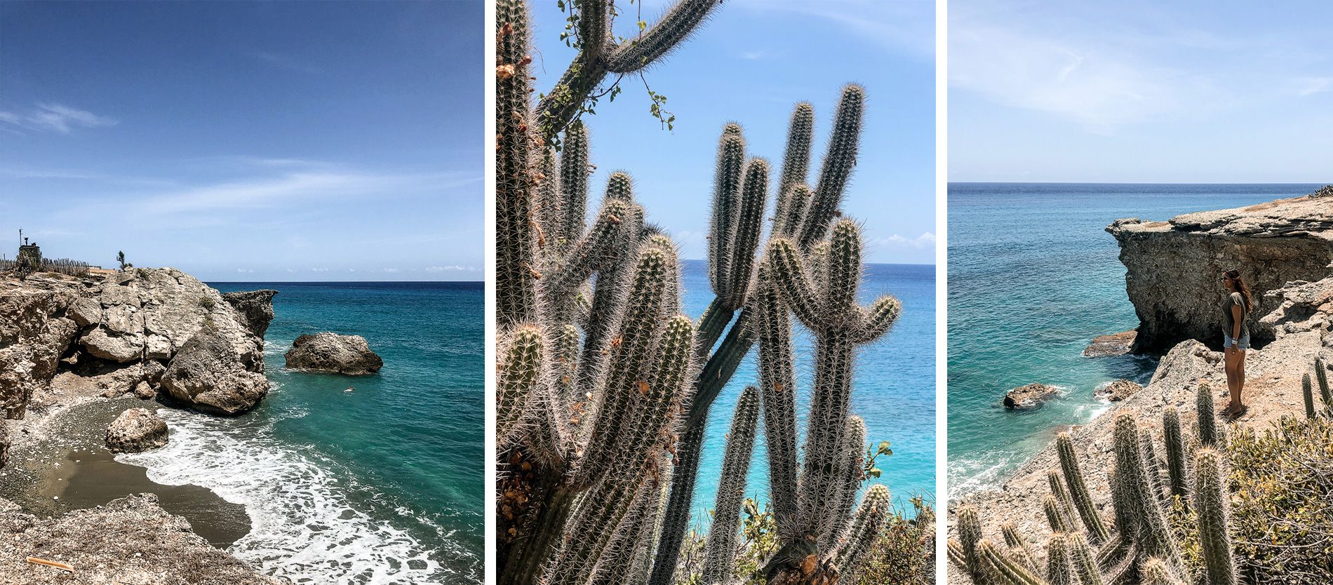 La dernière étape de notre voyage nous conduit à Santiago de Cuba à l’est de l’île. De Baracoa, une route magnifique, certainement la plus belle que nous ayons empruntée à Cuba, vous emmène vers cette jolie ville bourrée de charme. Prévoyez 5h à 6h de trajet, ce qui vous permettra de vous arrêter et de profiter pleinement des paysages. Cette route, surnommée la « Farola » est une route de montagne sinueuse sur sa première partie, aux décors verdoyants caractéristiques de la province de Guantanamo. Arrivés à la hauteur de Cajobabo, le paysage devient plus aride, presque désertique tout en longeant le bord de mer. La végétation moins luxuriante, laisse place aux cactus et les terrasses calcaires plongent par étages sur la mer… un vrai contraste des plus étonnant apportant une palette supplémentaire à cette île si belle. Nous vous conseillons de vous arrêter pour une halte plage à « Ranchon del Sur », une petite crique cachée surplombée d’un petit restaurant de bord de route pour déjeuner si vous le souhaitez. Le service était assez long mais vous patienterez en vous baignant. Pensez à prendre des chaussures pour marcher dans l’eau car il y a parfois des pierres coupantes…