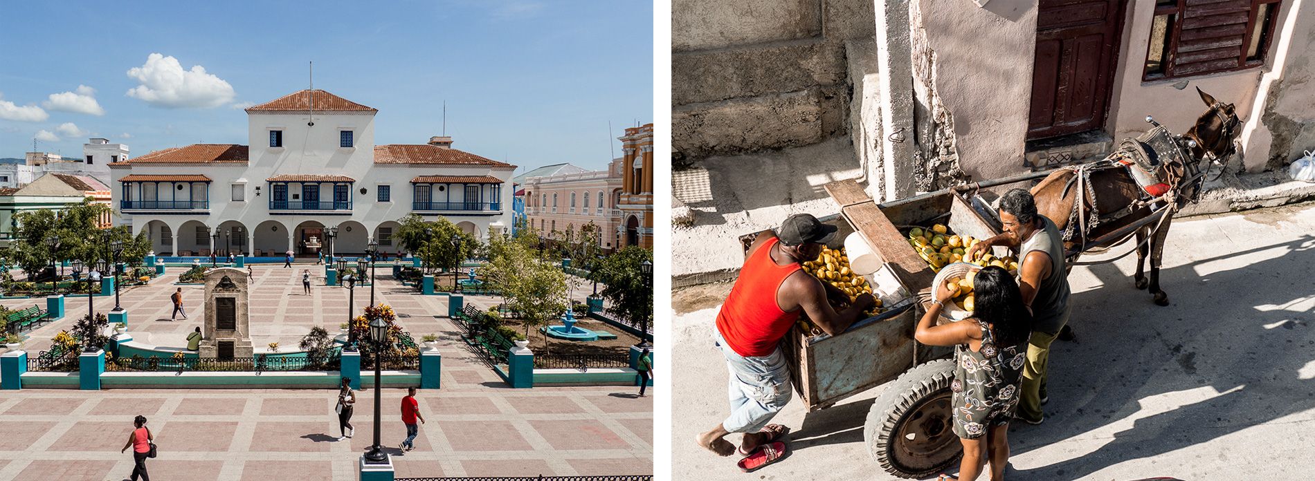 Tout comme la Havana, Santiago de Cuba se prête plutôt bien à une visite en vieille voiture. Les ruelles sont assez étroites et cela permet de voir l’essentiel de la ville. Vous pourrez flâner à pied et en voiture dans le centre historique appelé Casco Histórico, en commençant par l’une des plus belles places de la ville, le Parque Céspedes, entourés de beaux bâtiments d’architecture coloniale et la Casa Diego Velazquez, résidence du premier gouverneur de Cuba. C’est aujourd’hui la plus ancienne maison de tout Cuba. Il y a également la jolie cathédrale de « Nuestra Señora de la Asunción » à voir. Plusieurs fois détruite, elle vient d’être rénovée suite à l’ouragan Sandy de 2016. Le tour en voiture vous conduira du côté de Plaza Revolucion visible de loin avec ses 23 machettes, la petite place ombragée Plaza Dolores, Plaza de Marte avec sa colonne de 20 mètres de haut, le quartier emblématique de Tívoli avec ses ruelles en pentes et raides bordées de maisons et le fameux escalier Padre Pico. Nous avons beaucoup aimé flâner à pied dans la ville car c’est l’occasion de voir des scènes de vie pas comme les autres: un cochon égorgé dans la rue, un jeune qui se fait coiffer à l’angle d’une rue et un monsieur qui essaye tant bien que mal de peindre un mur sur une échelle en bambou.