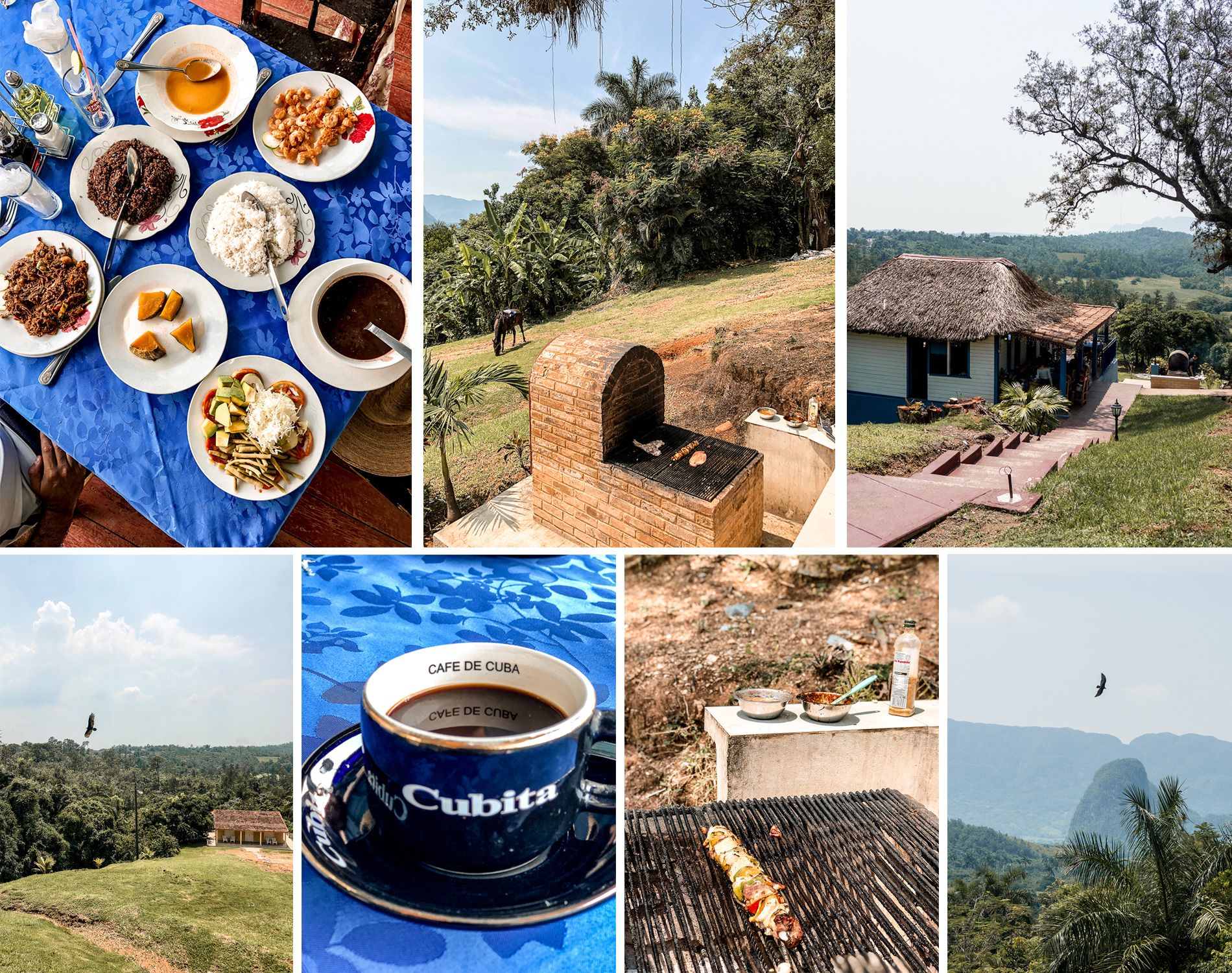 Il ne faut pas quitter Viñales sans avoir testé le célèbre barbecue cubain à 12 CUC/ avec en entrée une soupe puis au choix viande ou poisson au barbecue + accompagnements les 2 riz (blanc et moro, riz aux haricots noirs ), des haricots rouges et des morceaux de citrouilles rôtis. Comptez pour les boissons pour 1,50 CUC. On a testé au retour de la balade à cheval, le restaurant Buenavista avec sa jolie vue sur la vallée et les vautours qui viennent vous rendre visite . Très bonne adresse que je vous recommande.