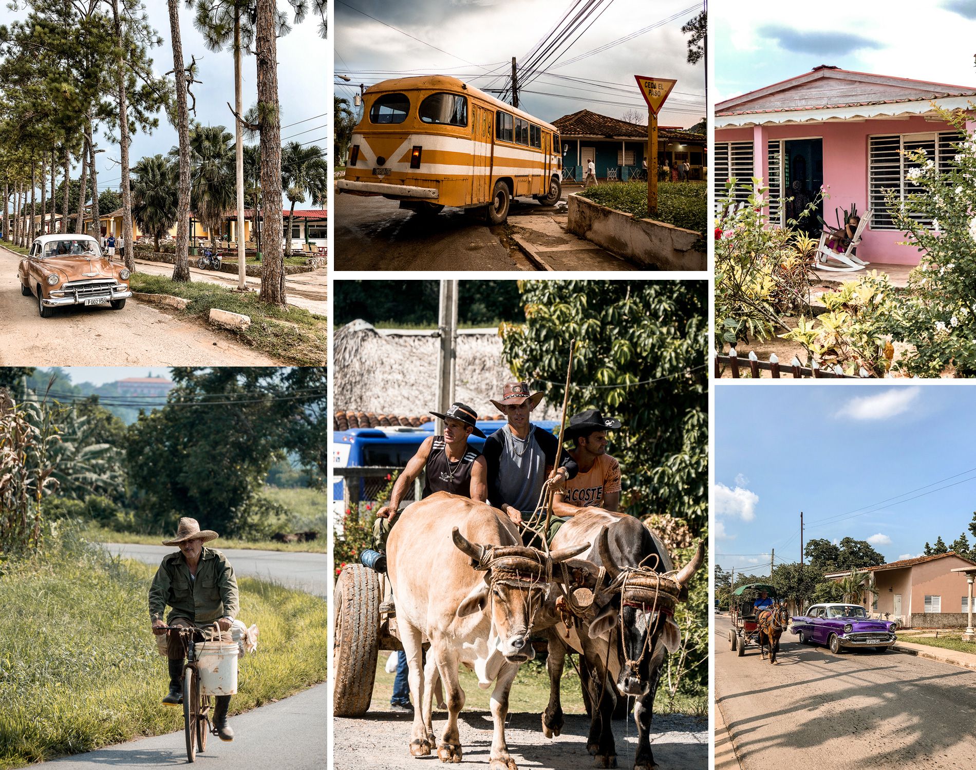 Étape incontournable du voyage, Viñales était une ville que nous attendions avec impatience. Nous avions hâte de voir les grandes vallées, les charrettes tirées par des bœufs, les cigares, les calèches et tout ce qui nous fait penser à la route du tabac. Vous n’allez pas être déçus du voyage car il y en a partout. Cela n’a rien de folklorique bien au contraire cela fait encore partie de leur quotidien: nous sommes bien arrivés sur le territoire des cowboys cubains. La première impression que nous renvoie Viñales est cependant celle d’une ville où le tourisme est bien développé: restaurants et bars très bien aménagés, nombreuses casas particulares, magasins de souvenirs… Ce serait vous mentir que de vous dire que vous arriverez dans un lieu ultra authentique. Mais cela ne gâche pas pour autant le plaisir, car malgré la fréquentation importante des lieux, la magie opère toujours, si tant est que vous choisissiez les bons lieux et les bonnes formules.
