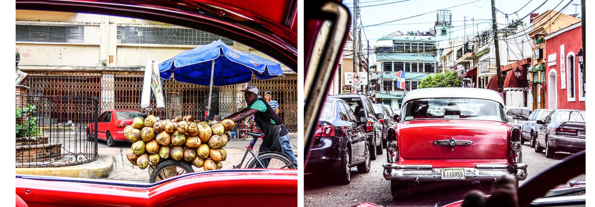 Et si vous visitez la capitale à bord d’une vieille voiture américaine ? C’est une visite atypique et vintage que nous vous proposons. Pendant quelques heures, à bord d’une vieille voiture d’époque des années 50, rouge écarlate de la marque Buick et accompagné d’un chauffeur dominicain, vous ferez le tour de la ville coloniale mais aussi de la nouvelle ville. Plusieurs arrêts sont prévus durant cette balade pour prendre tranquillement des photos et apprécier la visite.